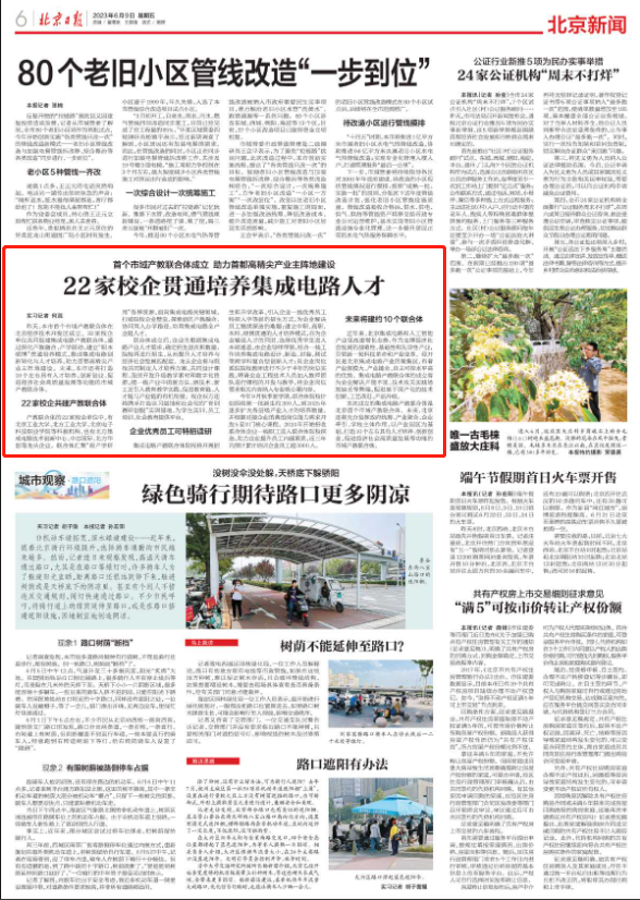 2023年6月9日,北京日报第六版报道了北京集成电路产教联合体成立暨BEAT365集成电路学院(人工智能学院)成立大会成功举办的内容,以下是报道全文: