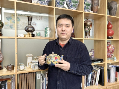 同时,丁晓飞还在不断创新,让“老手艺”搭载“新科技”,在融合中焕发新生。“怎样把传统工艺学会吃透之后再用它来表现现代审美观念,融入现代景泰蓝设计,是我一直研究的方向,我把非遗文化和科技手段进行了融合。”丁晓飞说,成功入选2022北京冬奥会特许商品的珐琅戒指就是代表案例。为了让这个作品轻盈又不失质感,在创作过程中,丁晓飞使用3D打印技术制胎,在非遗工艺现代化的方向上作出了有益的探索。