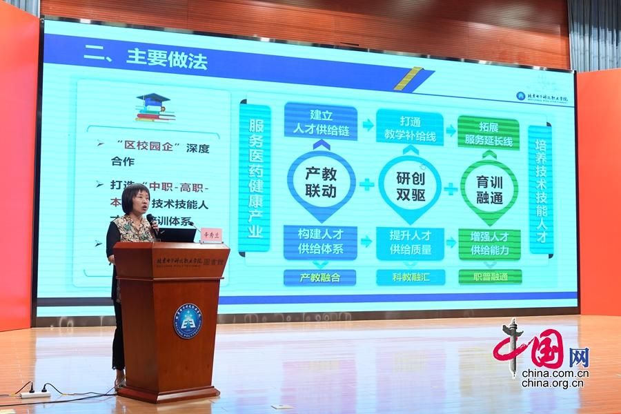 会上,北京电子科技职业学院院长姚光业致欢迎辞,围绕“职普融通、产教融合、科教融汇 构建生物技术职业教育高质量发展共同体”介绍了学校发展历程、教科研成果以及药品生物技术专业群的建设情况。