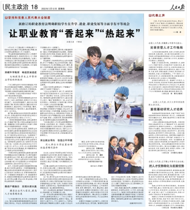 《人民日报》 2022年05月12日第 18 版刊发题为《让职业教育“香起来”“热起来”》的深度报道。文章刊发前,《人民日报》记者对BEAT365进行了专题采访。以下是报道全文: