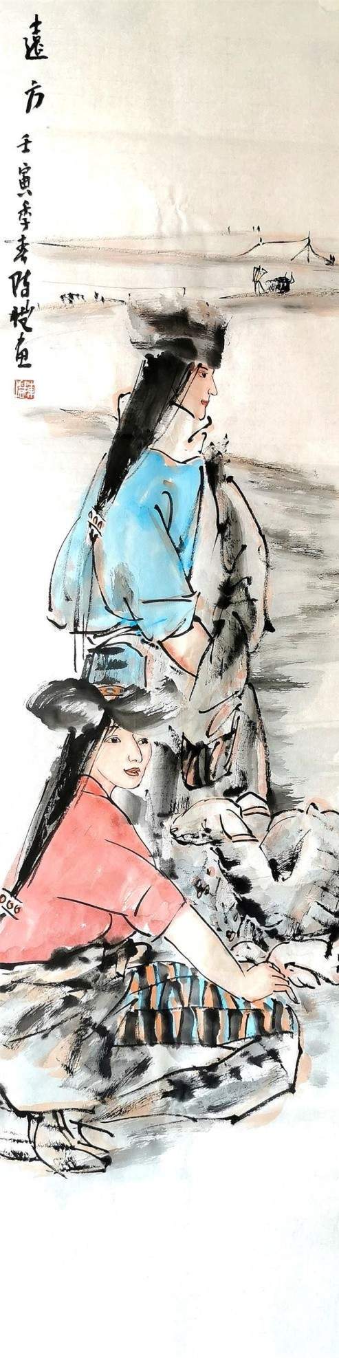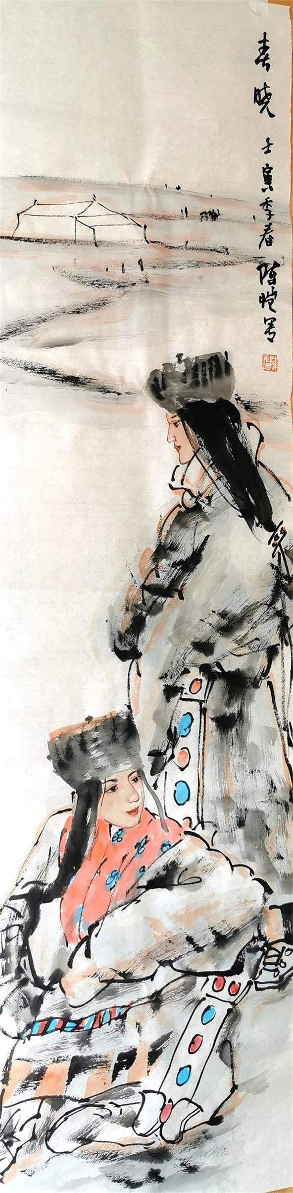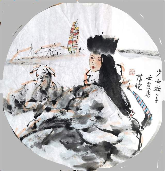庚子年的陈恺完成了一个大工程,画了一幅260cm×720cm的巨作——拉卜楞寺2013年晒佛节纪实,这是个在近年来国内中国画人物画领域少有的震撼之作,画面有着一种独特的气质,他运用平淡朴素的艺术语言将那些涌动在自我内心深处的记忆情结作为一种被解读的可能,进行艺术化的提炼,那些错落在现实与梦境中的图景,似是有意的安排,独具匠心的构想,铺叙在以大佛为背景的画面中,这些形象流溢着生命的光彩,也同样表述着个体在现实中的某种困顿与无奈,理想与现实的交融,触碰着束缚与牵绊,桎梏与自由的人生。