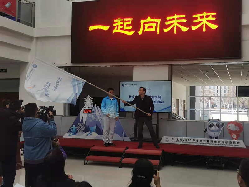 1月11日,北京电子科技职业学院北京2022冬奥会和冬残奥会志愿者出征仪式在学院学生活动中心隆重举行。出征仪式上,党委书记张启鸿对全体志愿者提出期望,姚光业院长为志愿者们授旗,志愿者们则进行了集体宣誓。