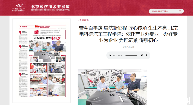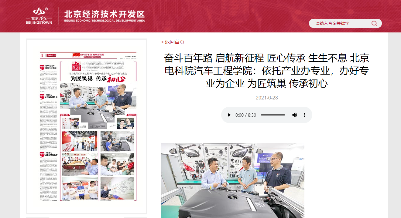 【亦城时报】奋斗百年路 启航新征程 匠心传承 生生不息 北京电科院汽车工程学院:依托产业办专业,办好专业为企业 为匠筑巢 传承初心