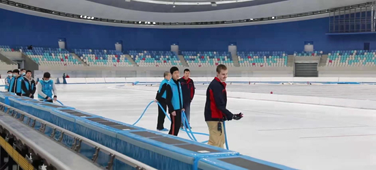 据国家速滑馆运行团队主任、国家速滑馆公司董事长武晓南介绍,2019年,国家速滑馆、国家游泳中心与北京电子科技职业学院联手开设了“双冰场馆制冰人才订单班”,以这两大冬奥场馆为实训基地,培养中国制冰力量。目前,该“订单班”共有32名学生,在测试活动期间,他们分别到两大场馆参与了制冰工作和赛时冰务保障。