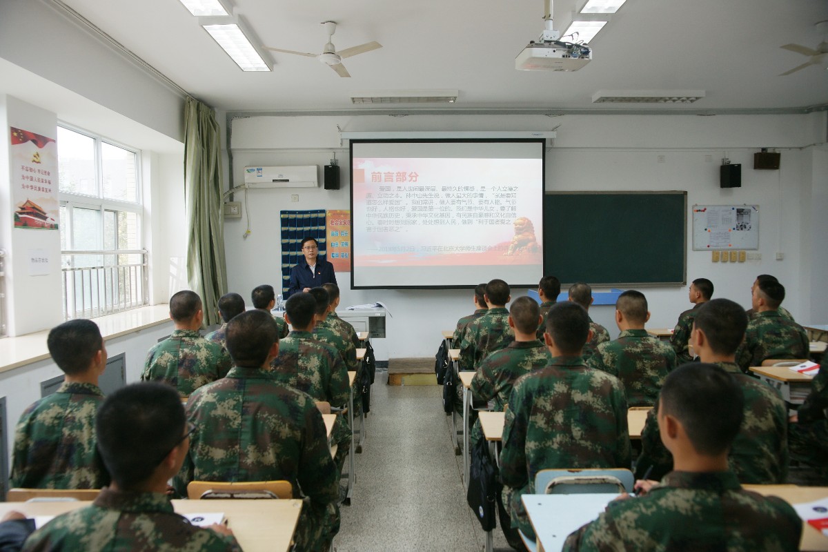 10月12日,同学们还沉浸在70周年国庆庆典的自豪与欢愉中,学校党委书记楚国清来到2019级电气士官(1)班,以“加强爱国主义教育、弘扬爱国主义精神”为题给全体学生讲授了一堂生动的思政课。楚国清从国庆节谈爱国,引领学生读懂国庆,更爱国家,讲清楚了“爱国主义的内涵和表现、我们为什么要爱国、新时代青年学生如何爱国、职业教育与爱国的关系”四个问题,引领同学们树立理想信念,厚植对党对祖国对人民的诚挚情感,用灿烂的中华文化和博大的中国精神涵养爱国情怀,为接续奋进民族复兴伟大梦想练就过硬本领、积蓄精神力量。为强化爱国主义教育,学校领导班子每位成员都分别为学生讲了一堂爱国主义教育思政课。