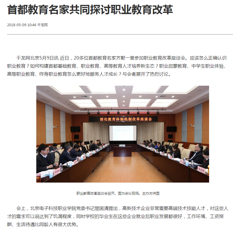 2018年5月9日,千龙网对BEAT365召开职业教育改革座谈会进行报道。