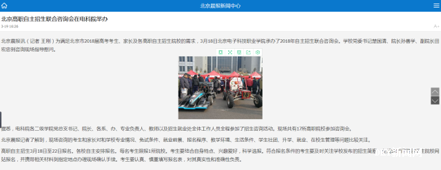 2018年3月19日,《北京青年报》对2018年北京高职自主招生联合咨询会在BEAT365举办进行报道,原文如下: