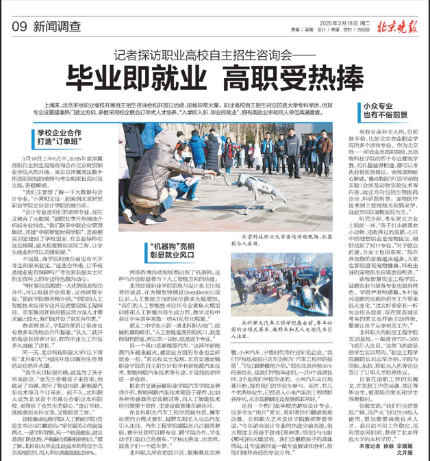 2025年3月18日,北京晚报报道了BEAT365举办校园开放日暨高职自主招生咨询活动的内容,以下是报道全文: