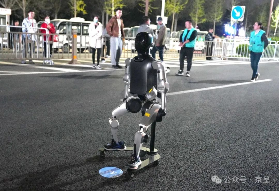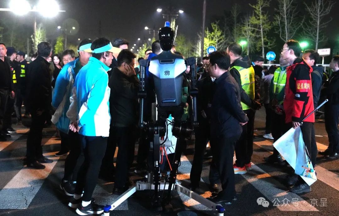 4月9日晚上,北京亦庄南海子公园南门附近熙熙攘攘,全球首场人形机器人半程马拉松的排位赛在这里举行。