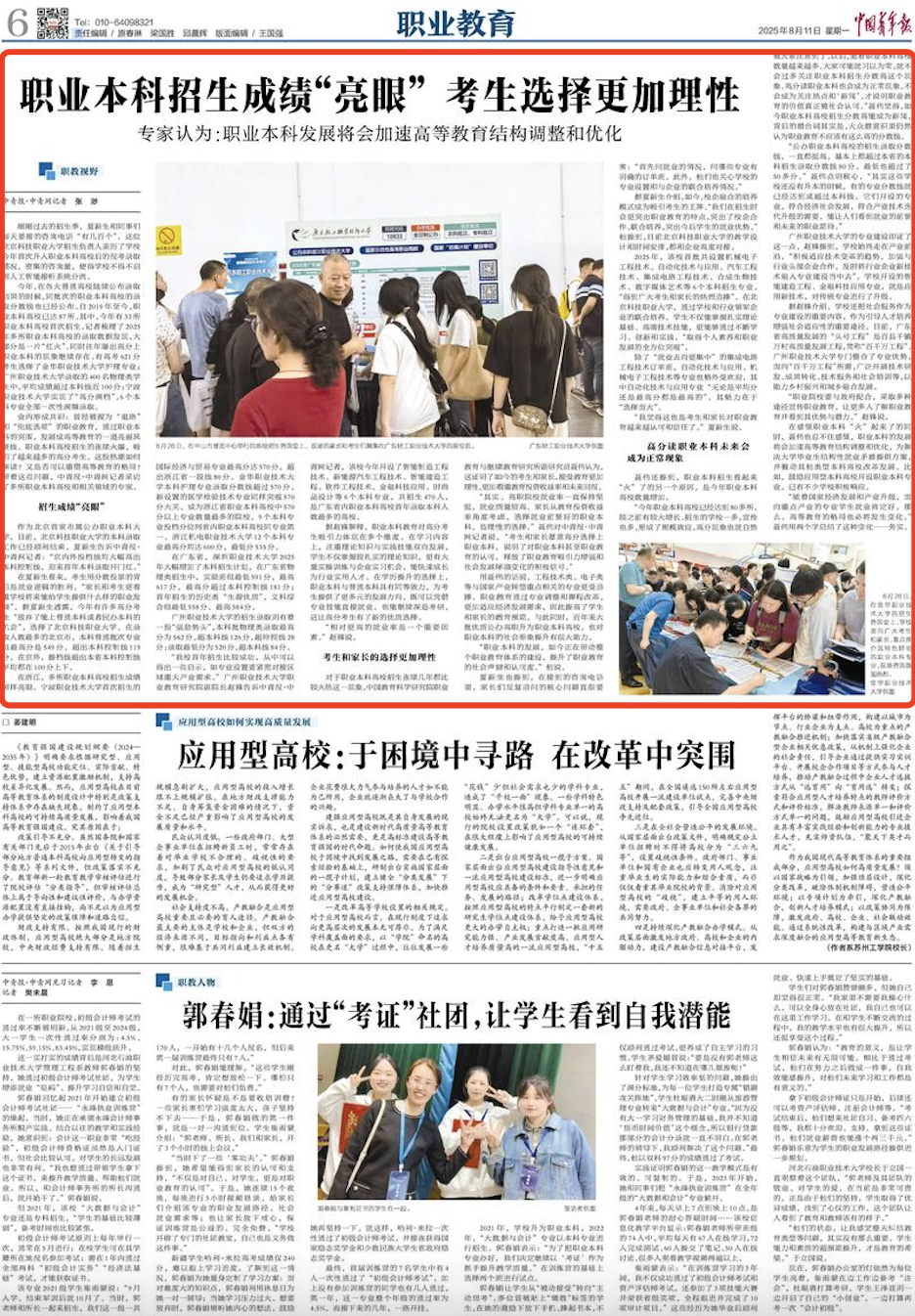【中国青年报】职业本科招生成绩“亮眼” 考生选择更加理性