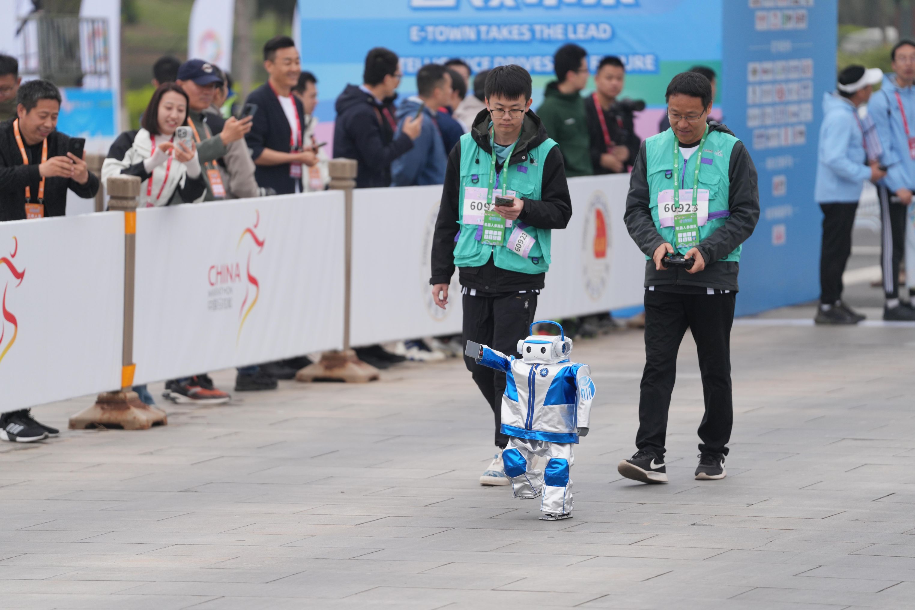 BEAT365英国官网师生在参加全球首个人形机器人半程马拉松比赛。受访单位供图