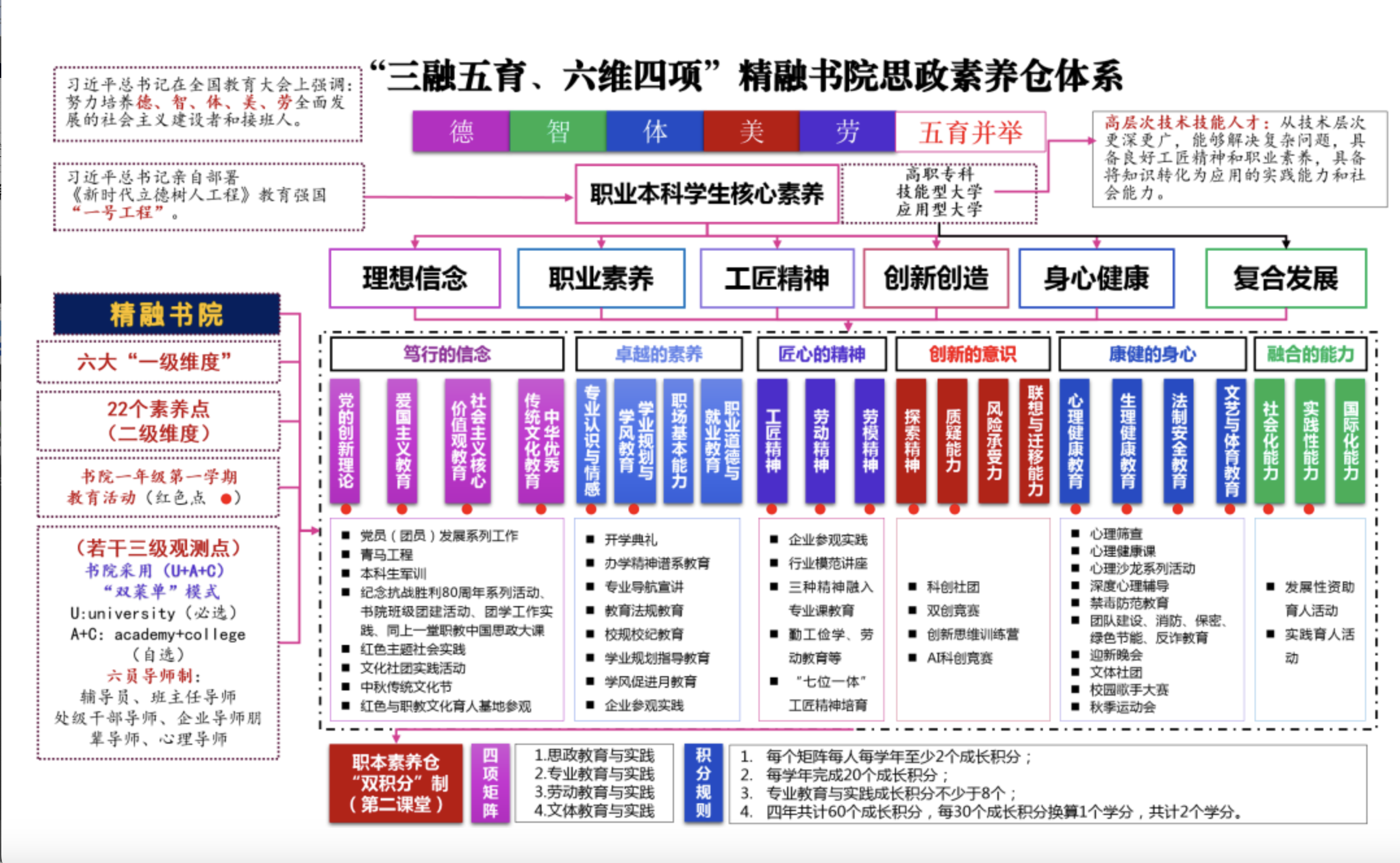 “三融五育、六维四项”书院思政素养仓体系架构图