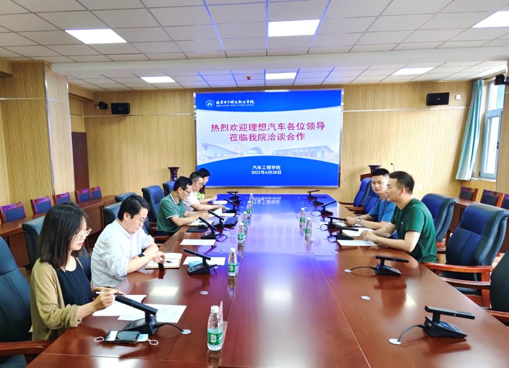 新能源汽车产业发展如火如荼,长期以来,汽车工程学院立足区域产业,依据“资源共享、优势互补、平等互利、共同发展”的原则,积极与企业开展深度合作。6月28日,北京理想汽车校企合作负责人到学院进行洽谈交流。汽车工程学院党总支书记李刚、副院长朱青松及部分骨干教师同时参加会议。