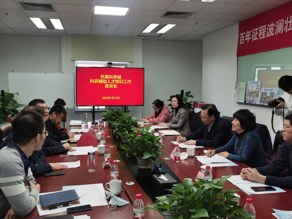 参观结束后,校领导带队与怀柔区政府、科学城管委会、怀柔区科委、中科院相关科研院所领导及有关企业负责人进行了座谈交流。怀柔区副区长季学伟,怀柔区科协党组书记、常务副主席任会东,中关村微纳能源公司董事长佘京学,中科院物理所怀柔研究部、中科院高能物理所大装置管理中心、中科院大气物理所等有关单位领导先后发言,并就怀柔“一城两都”建设、民生工程、科学城后期发展规划、科研院所及企业人才需求、培养目标、就业途径等进行了深入交流与探讨。姚光业院长就多方如何进一步深入开展合作,服务好国家战略、科学城建设、当地经济文化发展和就业等提出建议,并就合作领域、合作模式和实现路径等提出了具体设想。辛秀兰副院长对学校基本情况、专业设置、办学特色、成效以及联合怀柔科学城大科学装置辅助人才培养的合作思路进行了介绍。