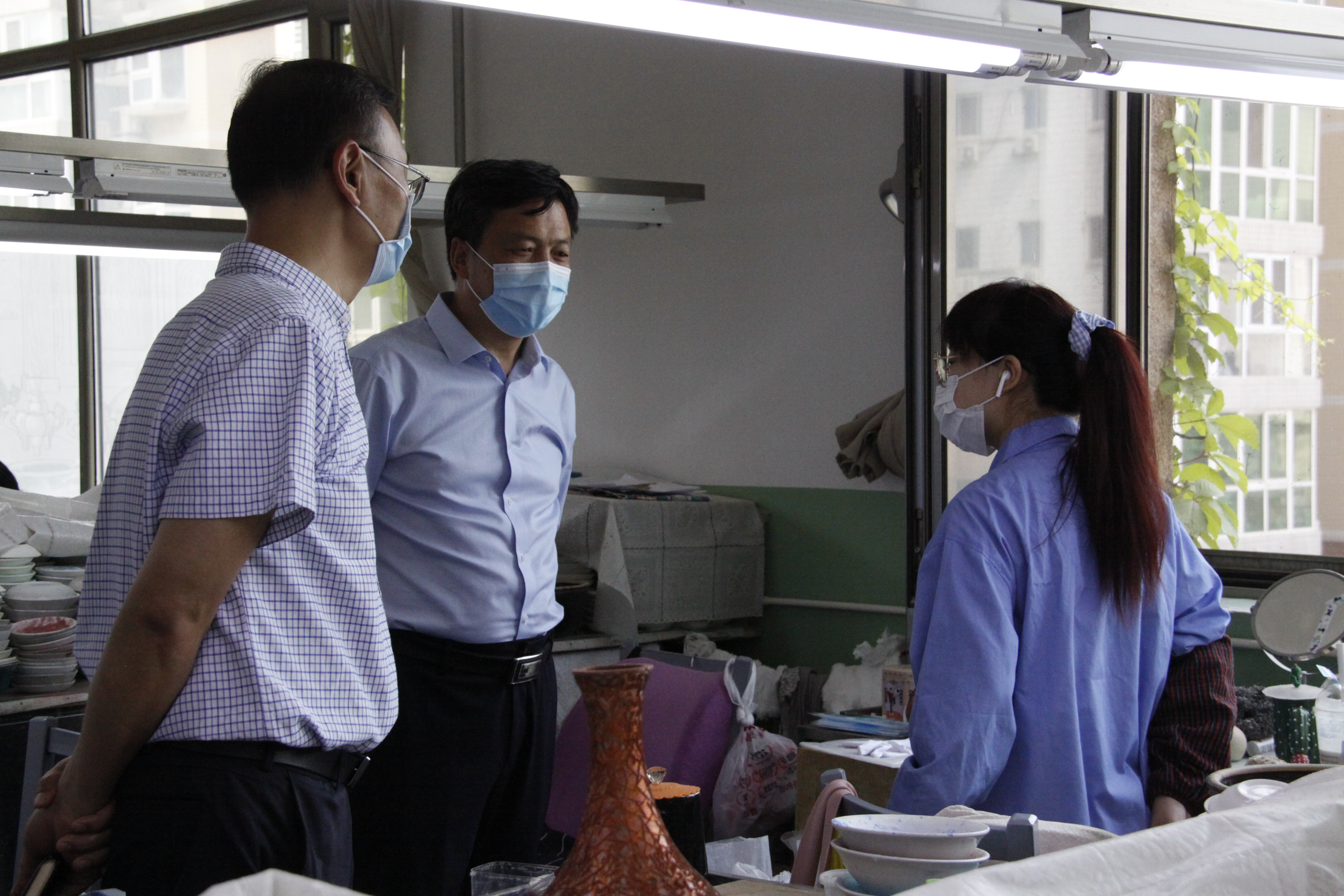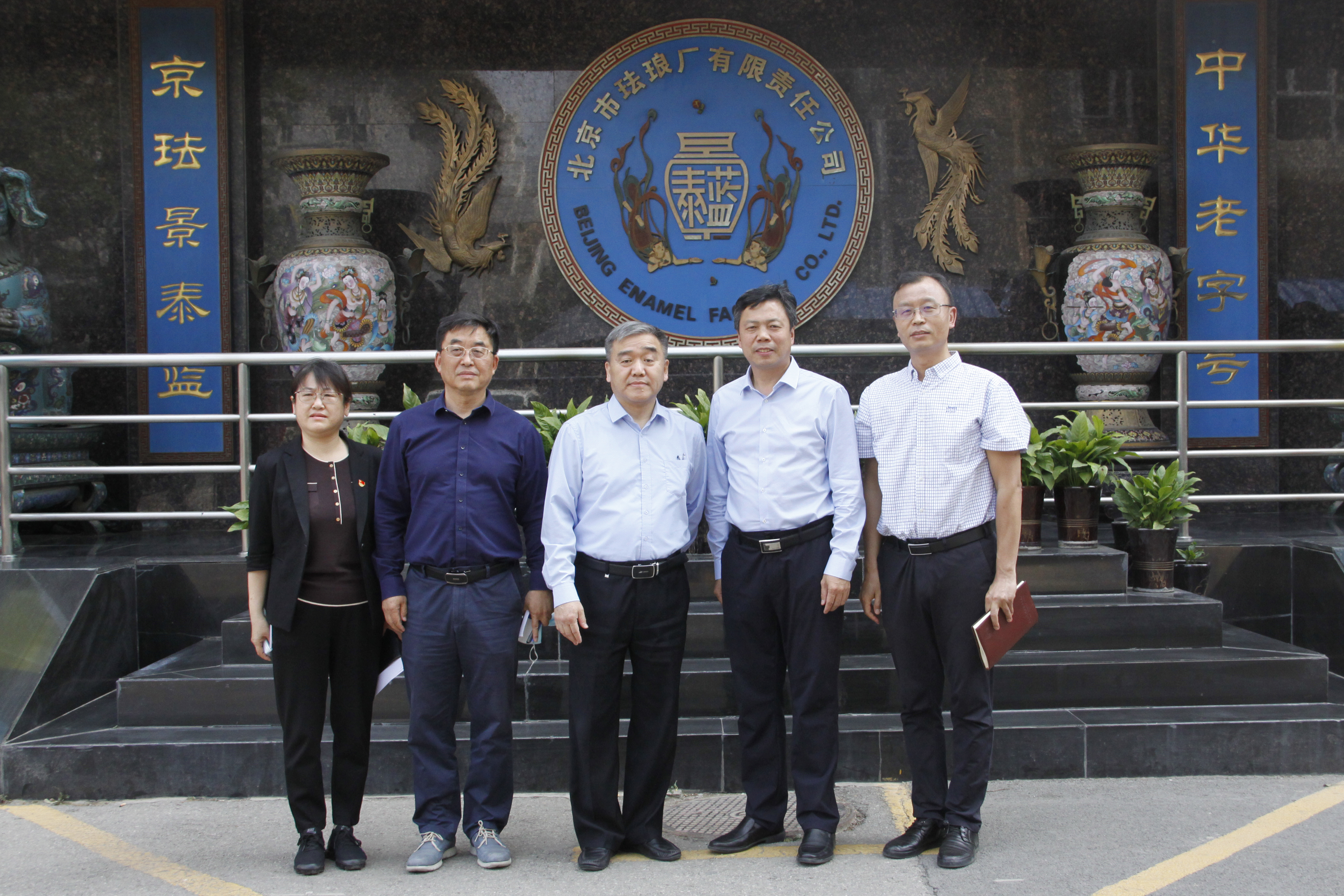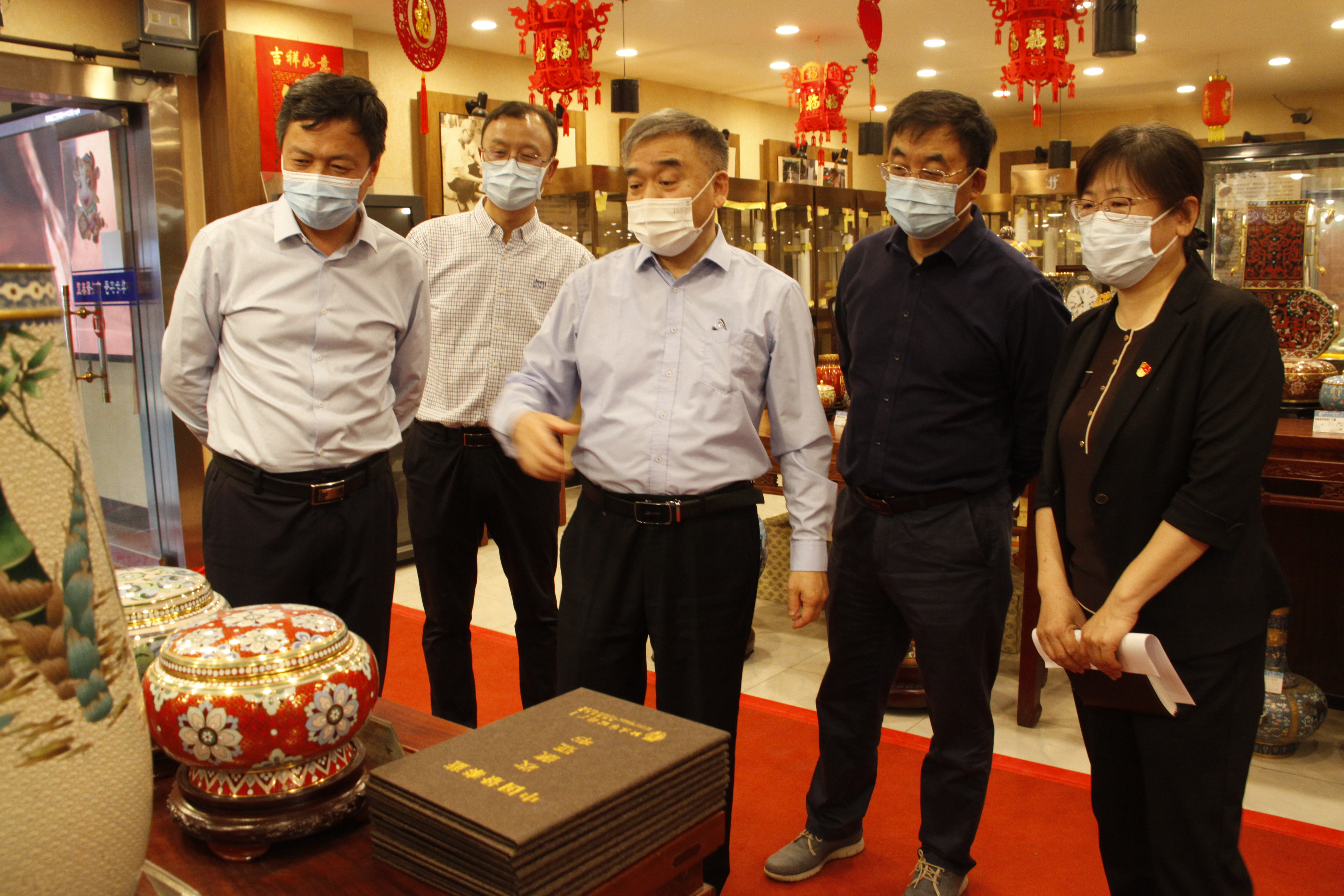 2021年5月19日下午14时,党委书记张启鸿带领艺术设计学院院长刘正宏、教务处处长周国烛及相关专业教师代表赴北京市珐琅厂有限责任公司深入调研。在中国工艺美术大师、总经理钟连盛、副总经理董艳娜的陪同下,首先参观了北京珐琅厂的生产车间和中国景泰蓝博物馆。参观期间,钟连盛大师详细讲解了北京景泰蓝的历史背景和生产工艺、公司近些年承担的国家级外事礼品服务项目及生产设计研发现状。参观过程中,张启鸿与在珐琅厂工作五年的本校产品设计专业毕业生刘彤亲切交谈,询问工作状况。调研团队在钟大师的精彩讲解下,全面了解了北京珐琅厂的辉煌历史和公司为服务首都政治、文化中心所作的成果,深刻感受了北京景泰蓝的工艺文化和时代魅力。
