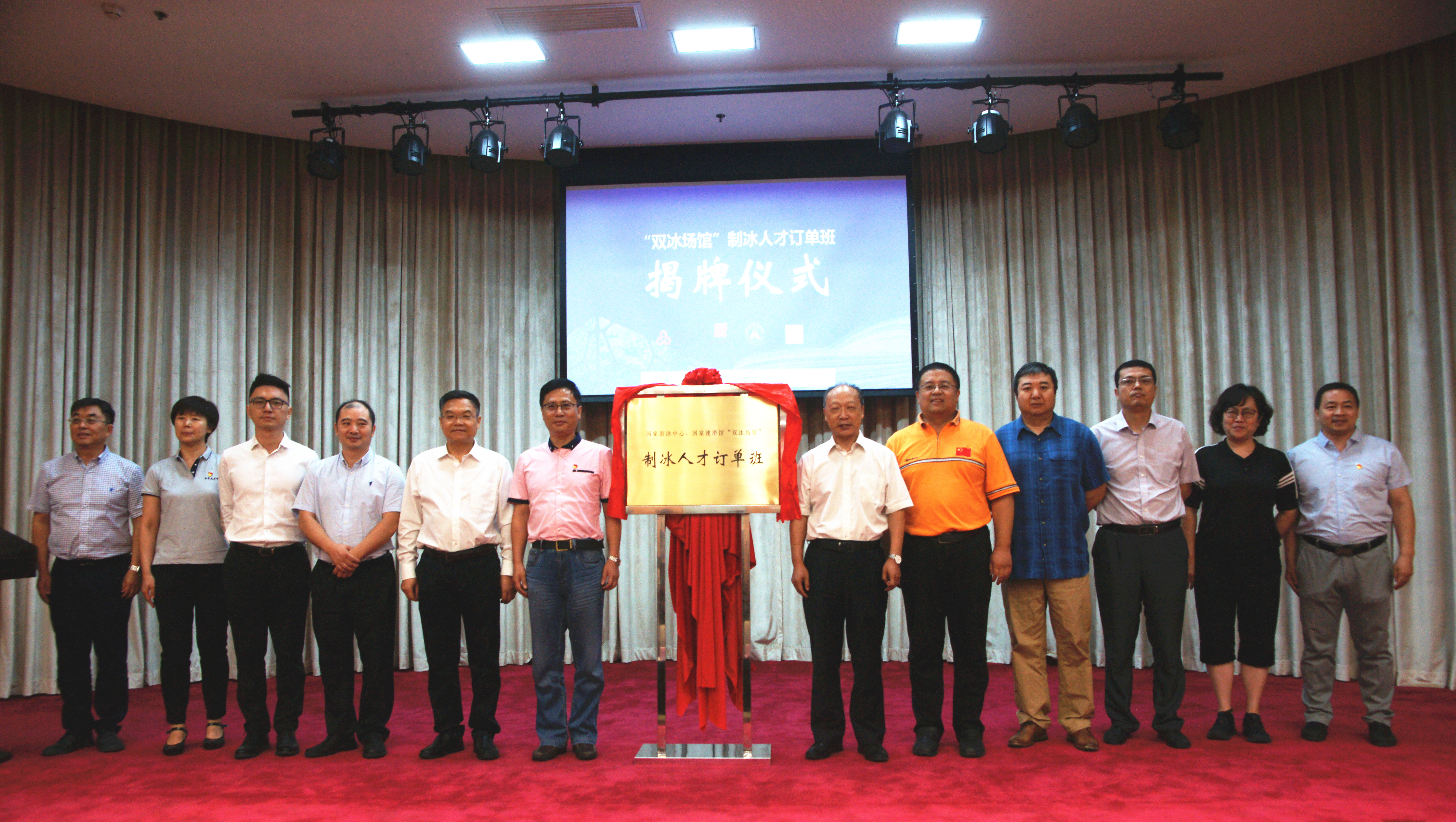 为贯彻落实《国家职业教育改革实施方案》、党的十九大和全国教育大会精神,深入落实“产教融合、校企合作”要求,推进产教协同育人、提高人才培养质量,共同“培育专业冰上人才,服务非凡冬奥盛会”,2019年9月10日上午,随着北京市教育委员会职成处王东江处长,BEAT365党委书记楚国清,北京市国有资产经营有限责任公司、北京首农食品集团有限公司有关负责人共同揭开红缎,国家游泳中心、国家速滑馆“双冰场馆”制冰人才订单班在BEAT365正式揭牌成立。机电工程学院、教务处、招就处、宣传部有关负责人,企业负责人,新华社、中央电视台(体育频道)、北京日报、北京电视台等众多媒体、教师、订单班学生共同出席了揭牌仪式。