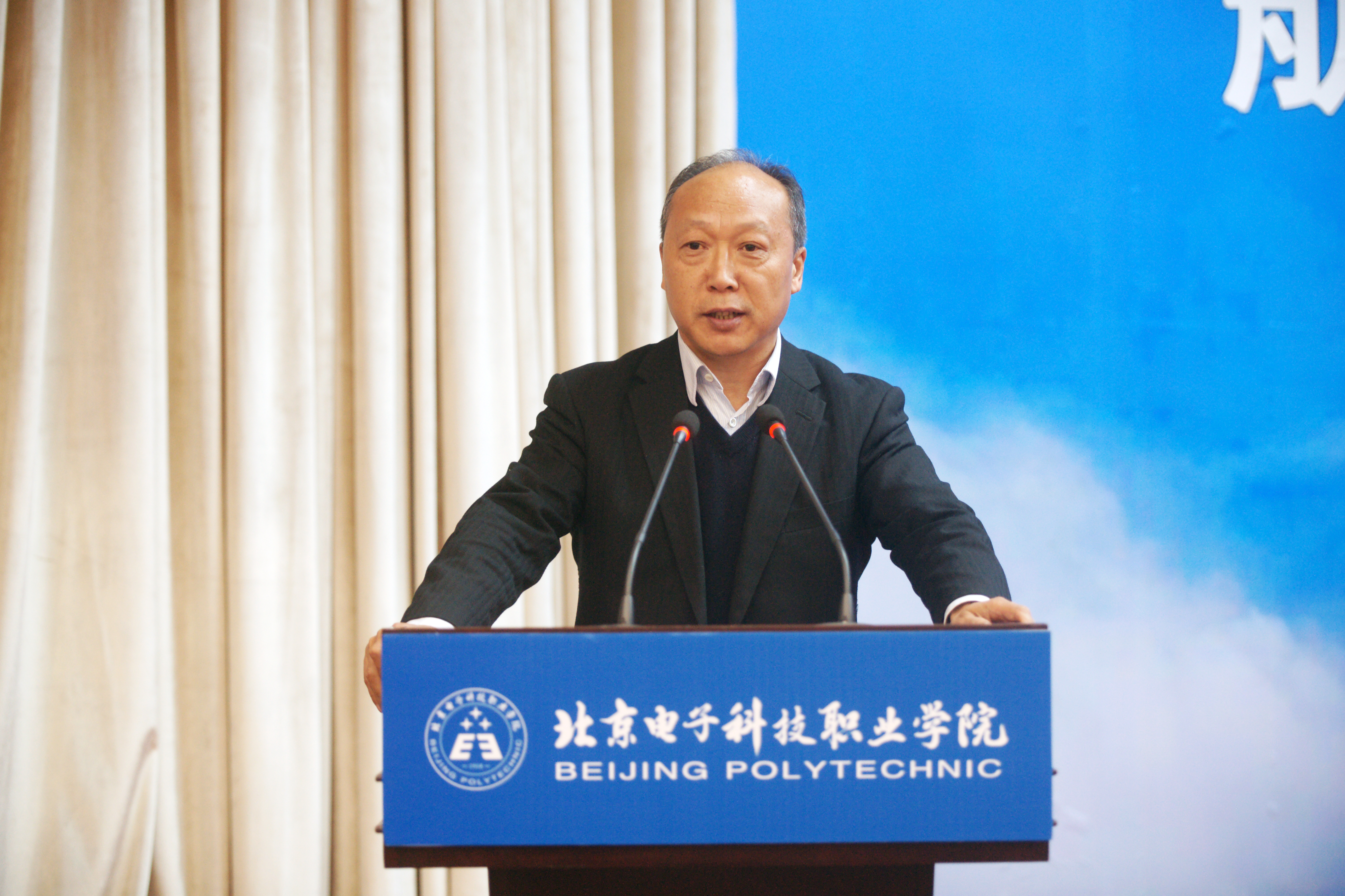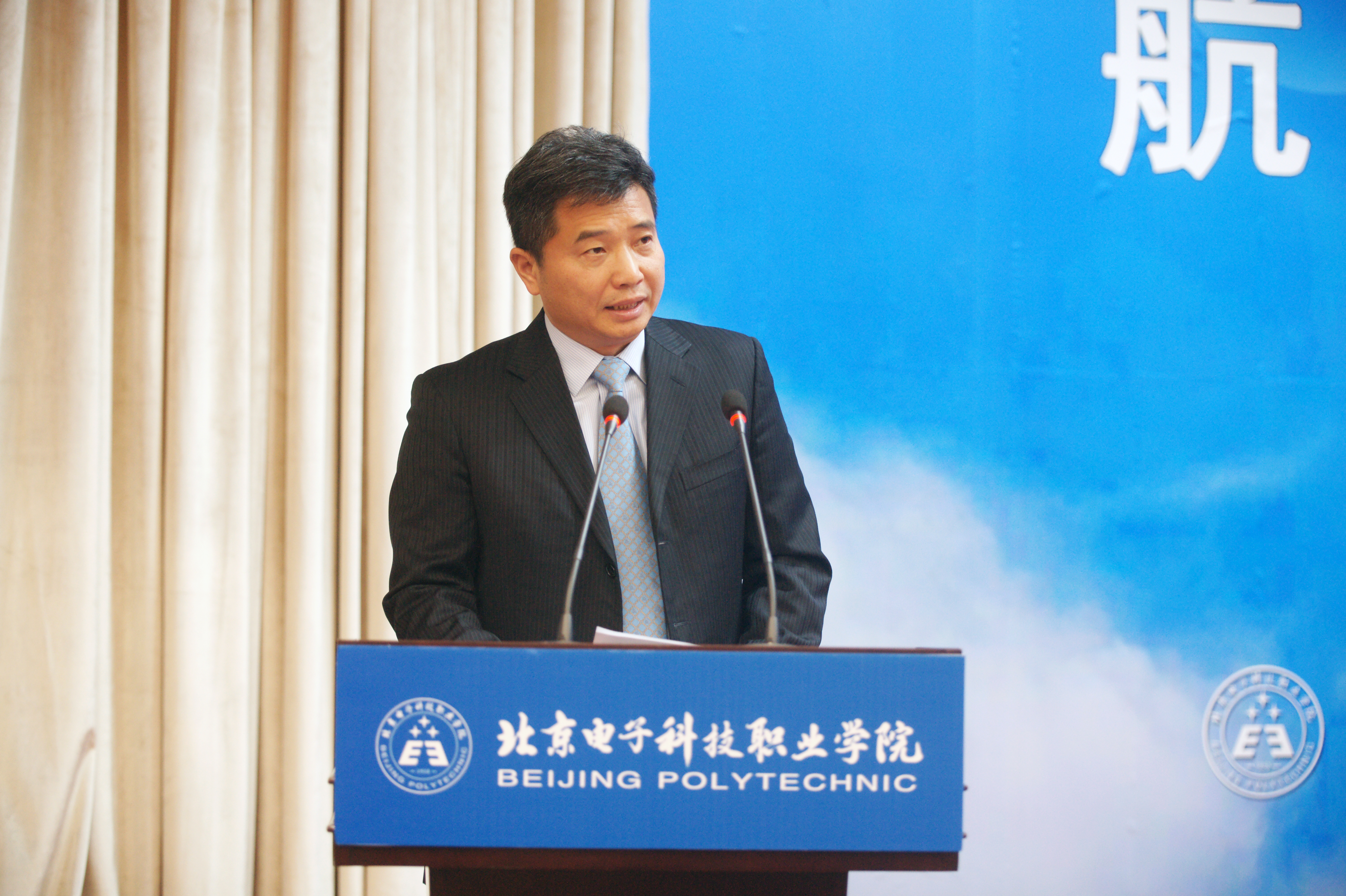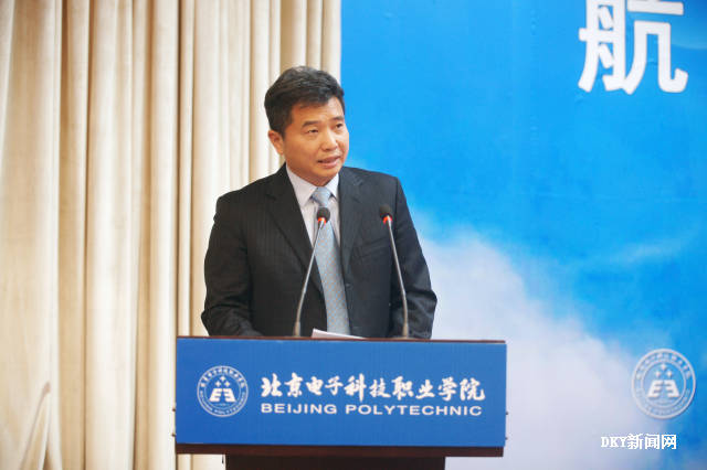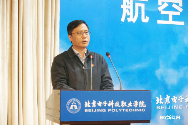 王东江处长代表北京市教委发表了讲话。他指出:在全国隆重庆祝改革开放四十周年之际,校-企-校三方合作成立了“航空工程技术学院”,这是职业教育人才培养模式改革的一次新探索。《北京职业教育改革发展行动计划》对北京未来三年职业教育改革发展提出了明确的目标。他希望:合作三方要充分利用“航空工程技术学院”这个平台,打破原有的思想束缚,用崭新的职业教育理念推进航空专业的发展;合作三方要共同制定符合国际航空标准,满足企业生产岗位实际需求的人才培养方案;在课程建设上,要根据企业生产一线的实际要求进行建设;在课堂教学上,要充分运用信息技术手段,以项目教学、案例教学为载体,打造以学生为中心的课堂;在评价标准上,要对接企业用人标准、岗位工作标准进行教学评价体系改革。最后他强调,北京电子科技职业学院要充分利用“航空工程技术学院”这个平台,肩负起为首都航空培养技术技能型人才的重任,更好地满足新时代社会和人民群众对职业教育的新期待。