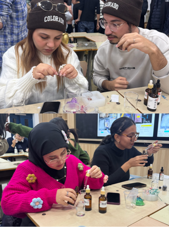 10月24日,国际教育学院联合生物工程学院、经济管理学院举办以“闻香识中道——从草本到香叙,解码药香同源的智慧密码”为主题的中医药香氛传统非遗文化体验活动。学校留学生在药香缭绕中沉浸式感受中华传统医药文化与现代香氛艺术融合的独特魅力。