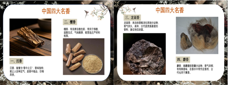 来自经济管理学院商英专业和生物工程学院中药香囊项目组的同学用中英文双语为留学生讲解了中国的香文化和“药香同源”的历史渊源与文化内涵,从《黄帝内经》到《本草纲目》,从祭祀用香到文人香事,娓娓道来中国香文化数千年的传承与发展。
