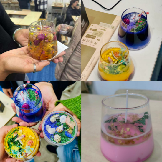 在“匠心凝香”实践环节,留学生可以动手制作香囊、香氛以及蜡烛。在“古韵药香囊”区,学生根据所学药材功效,亲手调配具有安神、驱蚊、醒脑等功能的香囊;在“国风淡香水”区,学生学习香水前中后调知识,利用檀香、艾草、桂花等中草药精油,调制出独具东方韵味的个性香氛;在“凝香烛艺”区,同学们将中药材切片与植物蜡融合,制作出兼具观赏与实用价值的香薰蜡烛。