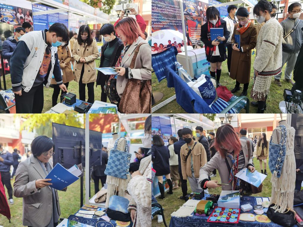 The booth of BP focused on“Youth Skills Development”, displaying the school how to cultivate students’Green Skills and its efforts in promoting the sustainable development goals of the United Nations. With the organization of the International Office and the cooperation of the secondary Schools, the preparation work went well. At the exhibition, student representatives from Automotive Engineering School, Bio-engineering School and Art&Design School displayed their“Green Skills”and demonstrated some of their learning achievements, such as using waste cloth to make exquisite handicrafts, producing biogas by straw fermentation and designing car models remoted by Bluetooth. The exhibition works of the students attracted attention of Chinese and foreign guests, with so many people gathering around the boot of BP. Some guests wonderd that a small piece of discarded cloth could make such delicate works of art; some foreign guests appreciated the 3D Printed car models; some were  interested in the advanced fermentation device. The booth of BP became one of the highlights of this exhibition.