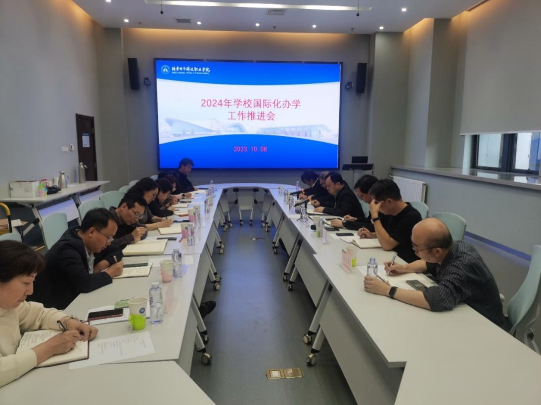 为进一步推进学校国际化办学工作,谋划好2024年国际合作项目开展,10月8日下午,学校召开2024年国际化办学工作推进会。副院长陈江锋,党委教师工作部、党委学生工作部、教务处、科技处、国际合作与交流处负责人及二级学院主管国际化办学的院领导和全体涉外教师出席会议。会议由国际合作与交流处副处长马峻主持。