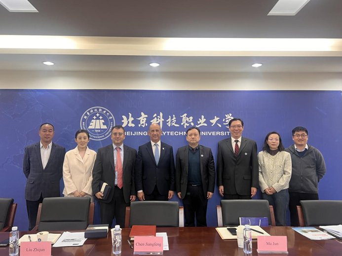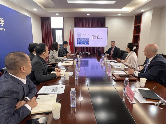 陈江锋向来访人员介绍了学校的总体情况以及国际合作与交流方面取得的成果。马耳他艺术科学技术学院校长Stephen Vella介绍了马耳他艺术科学技术学院的基本情况,同时对学校的热情接待表示感谢,并诚挚邀北职大代表团在方便的时候访问马耳他。Vella希望能够与学校在课程共建、学生专升本、联合科研等领域开展务实合作,共同探索国际教育合作新模式,为推动中马国际教育的繁荣与发展贡献力量。双方就专业建设、学分互换、学生赴境外留学等领域的合作事宜进行了深度的探讨并达成了共识。