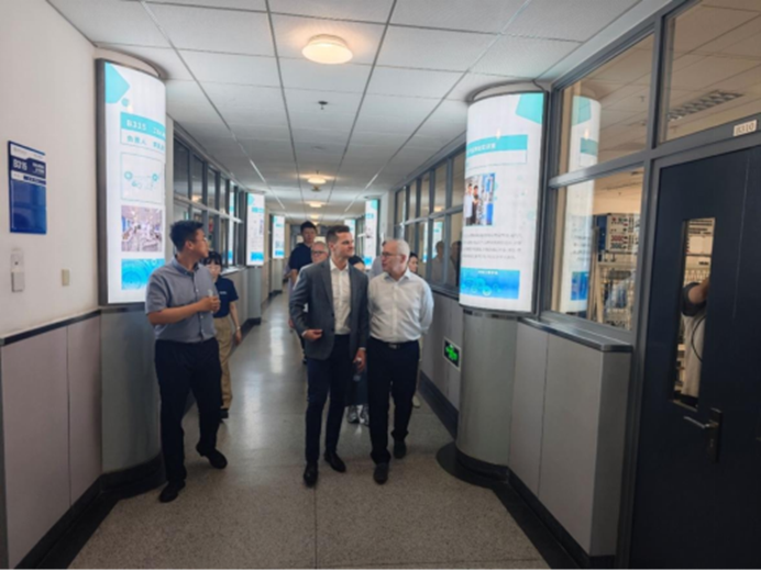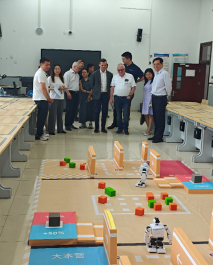 座谈会前,代表团一行参观了航空工程学院、集成电路学院、机电工程学院等实习实训场所。