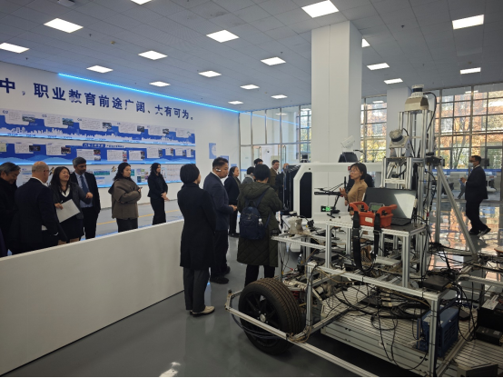座谈会前,泰国职业教育代表团一行参观了生物工程学院、汽车智能网联产业学院、机电工程学院实习实训场所。教务处、国际合作与交流处、国际教育学院相关人员一同参加了此次活动。