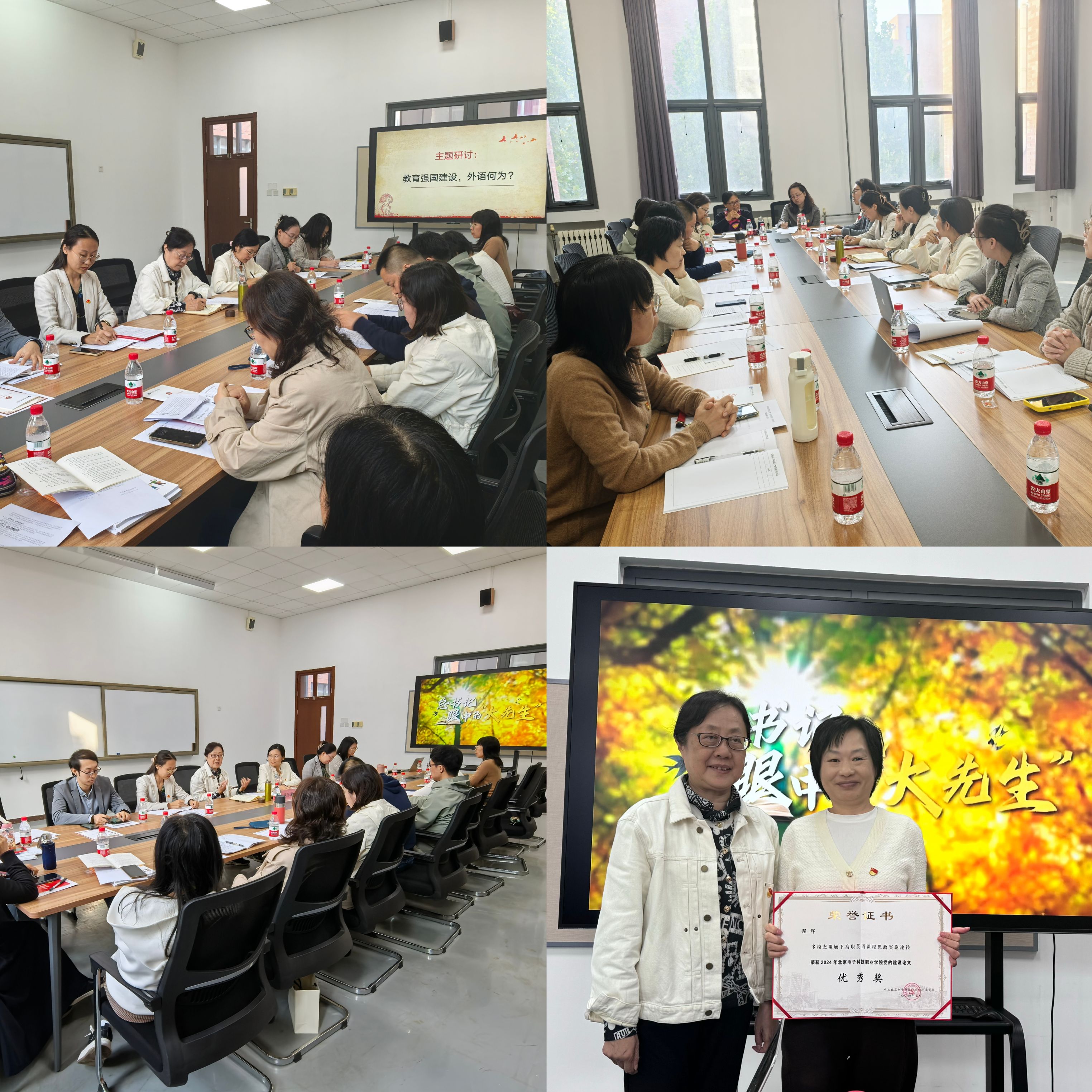 陈渌漪对本次党课学习活动进行点评和指导。她从学习内容、学习形式、学习组织等方面肯定了本次活动,并对全体提出了牢记“常讲常新”和落实好“课程思政”的希冀。支部邀请陈渌漪为党员教师程辉颁发了“2024年北京电子科技职业学院党的建设论文优秀奖”。