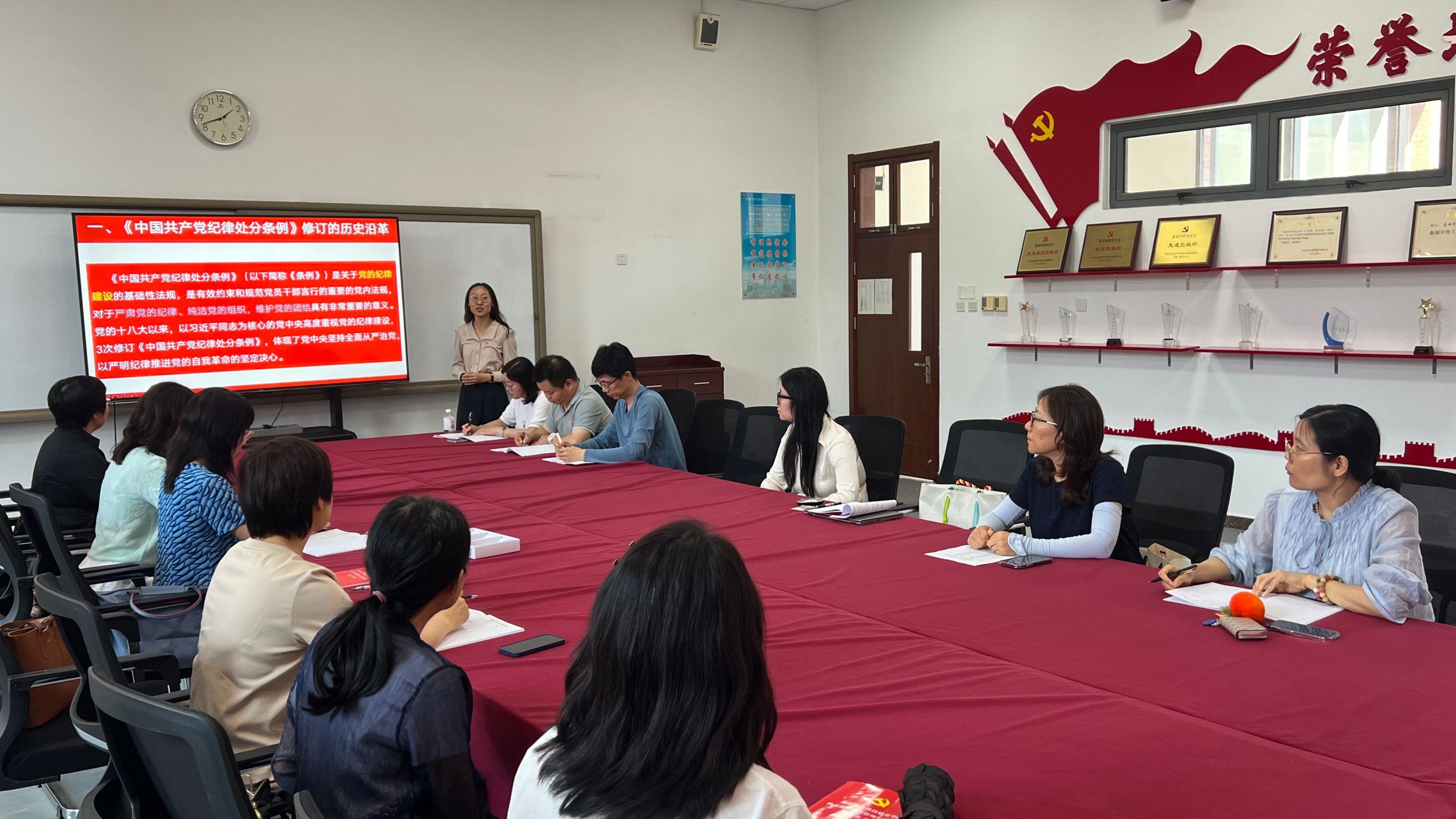 为推进党纪学习教育走深走实,强化党员纪律意识,6月14日下午,外语教学部党支部书记张玉双围绕《中国共产党纪律处分条例》(以下简称《条例》),讲授了一堂题为“坚守纪律底线,共筑清廉外语教学部”的党课。