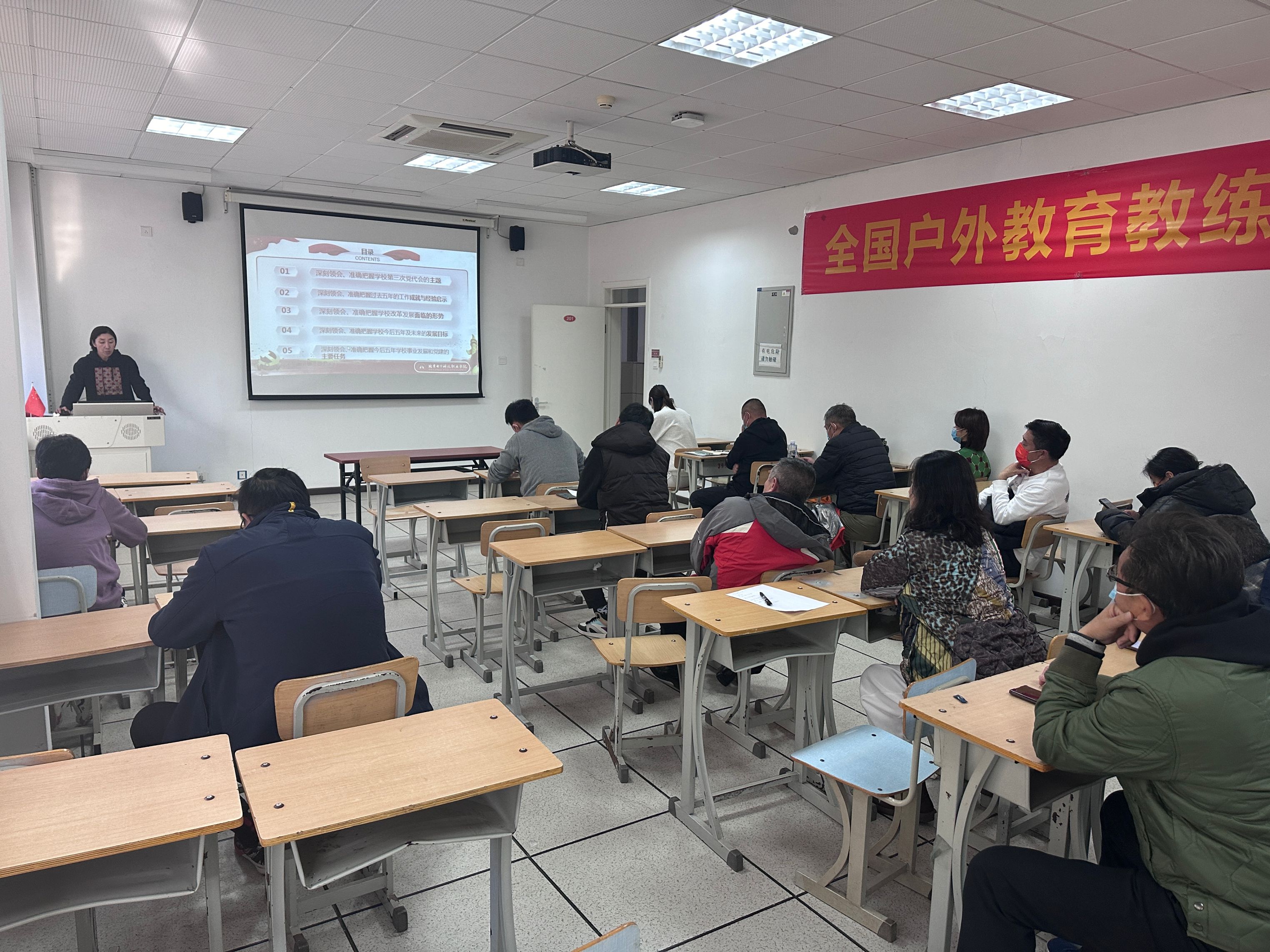 学习由支部书记陈爽超主讲,她从学校第三次党代会的主题、工作成就与经验启示、面临的形势、未来发展目标、事业发展和党建主要任务五个方面详细解读了学校第三次党代会精神,并号召全体教师要紧密围绕学校第三次党代会决策部署,结合体育学科特点和工作实际,将党代会精神融入教育教学、科研教改、社会服务等学校工作的各方面、全过程,让体育人的奋斗成果在实现学校第三次党代会宏伟蓝图张中留下浓墨重彩的一笔。