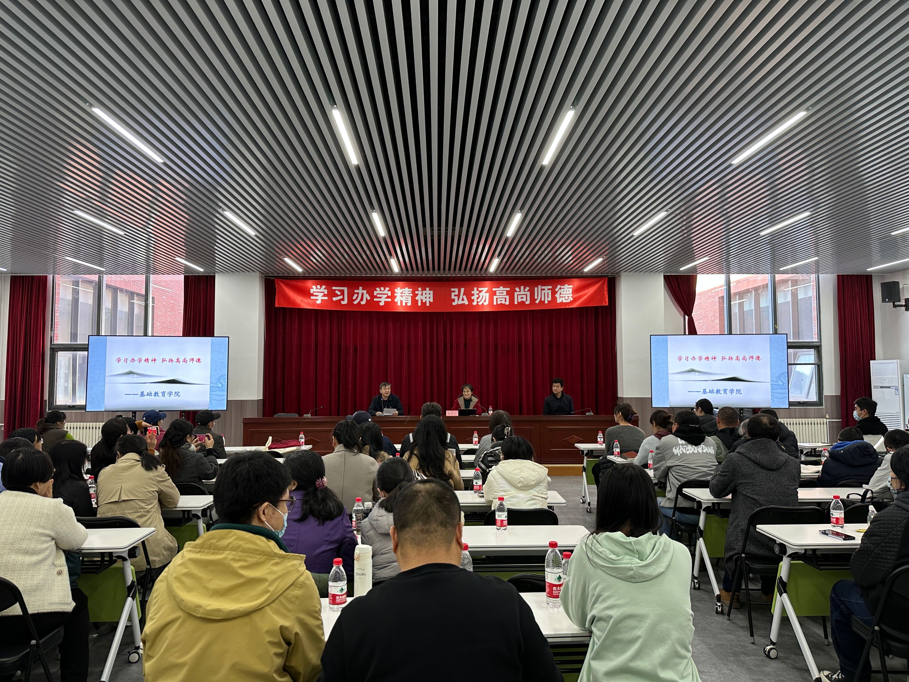 为深入学习宣传学校办学精神,弘扬高尚师德,11月17日,基础教育学院党总支特邀学校关工委委员、基础教育学院关工委副主任耿密云作“学习办学精神,弘扬高尚师德”专题报告,学院党总支书记熊伟主持,全体教职工参加。