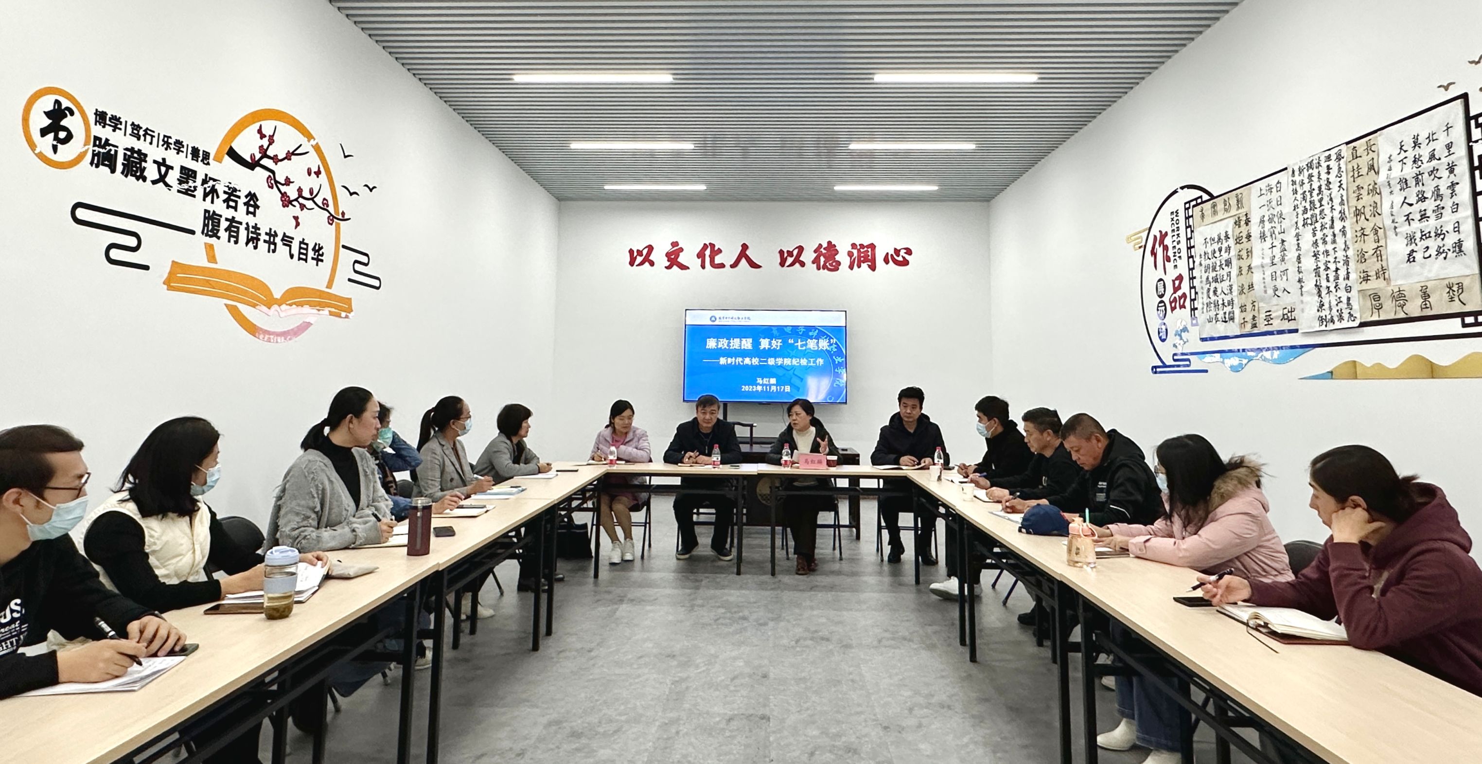 马红麟在报告会上就如何推进党风廉政建设,从教职工层面和二级学院层面分别进行了工作提醒。教职工个人要算好“七笔账”,即政治账、经济账、名誉账、家庭账、亲情账、自由账和健康账,不能“一失足成千古恨”。二级学院层面要认真梳理工作流程,查找廉政风险点,健全常态化监督检查机制,让每名教职工不想腐、不能腐、不敢腐,真正压实党风廉政建设责任。她强调党总支和支部纪检委员要发挥监督作用,对学院“三重一大”事项和涉及教职工切身利益事项要做到定期监督提醒,在相互监督、互相提醒过程中,切实有效将全面从严治党常抓不懈。