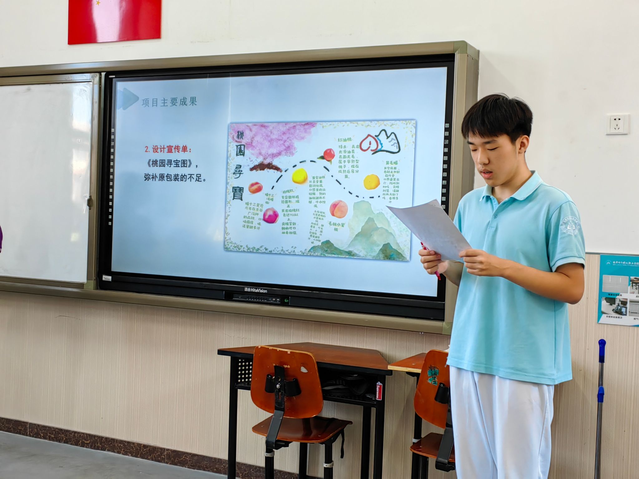 班会上,“其乐桃桃”助农服务团队的赵梓宵和杜松琳两位同学向大家讲述了“三下乡”社会实践活动的意义。他们介绍了团队在平谷区大华山镇东辛撞村开展“三下乡”社会实践的情况,分享了实践团的成果。同学们观看了实践纪实视频和《平谷鲜桃出山记》《平谷鲜桃“桃”你欢喜》两个宣传片,仿佛置身于桃园之中,感受到果农们劳动的艰辛和丰收的喜悦。