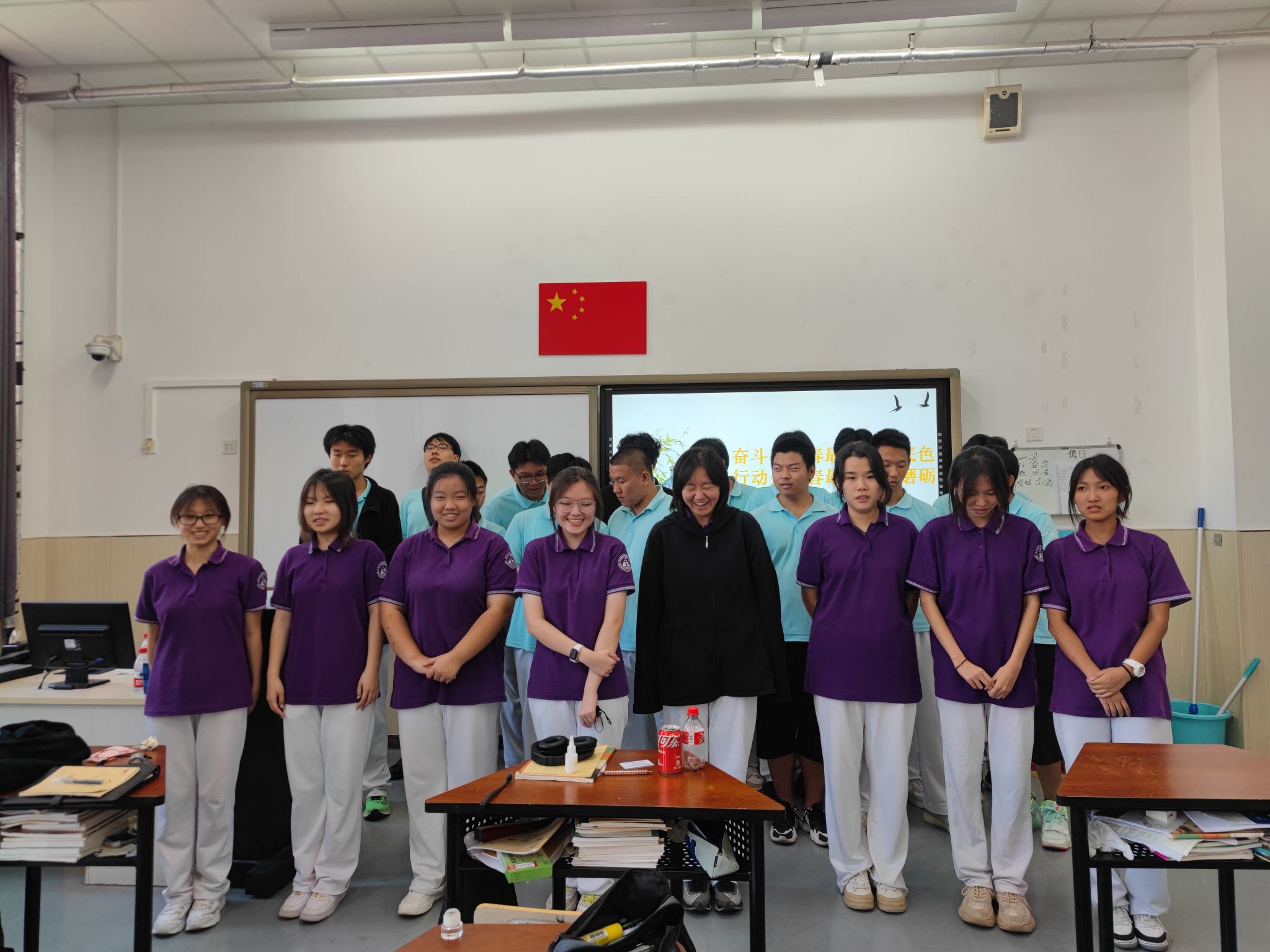 高胜寒、张馨雅朗诵了诗歌《最美的遇见》,表达了同学之情的难得与珍贵。家长们提供了同学们幼年、童年时期的照片,同学们围坐一起猜他(她)是谁,欢声笑语此起彼伏。在“我眼中的同学”环节,强烁琪、王昱、吴虹漪、贾京健和王芝超各选择了一位同学进行描述,他们用细致入微的观察、细腻真挚的情感描写了同学的外貌、语言、动作等,维妙维肖地刻画了同学的特点。在“我最感谢的同学”环节,陈天任、周昕玥、李嘉琦、秦依凡和王芝超表达了自己的谢意。赵钇涵、崔婧萱朗诵了诗歌《致青春》,告诉同学们“青春是那么美好”“青春是用来奋斗的”。最后,全体同学合唱了歌曲《感恩的心》。