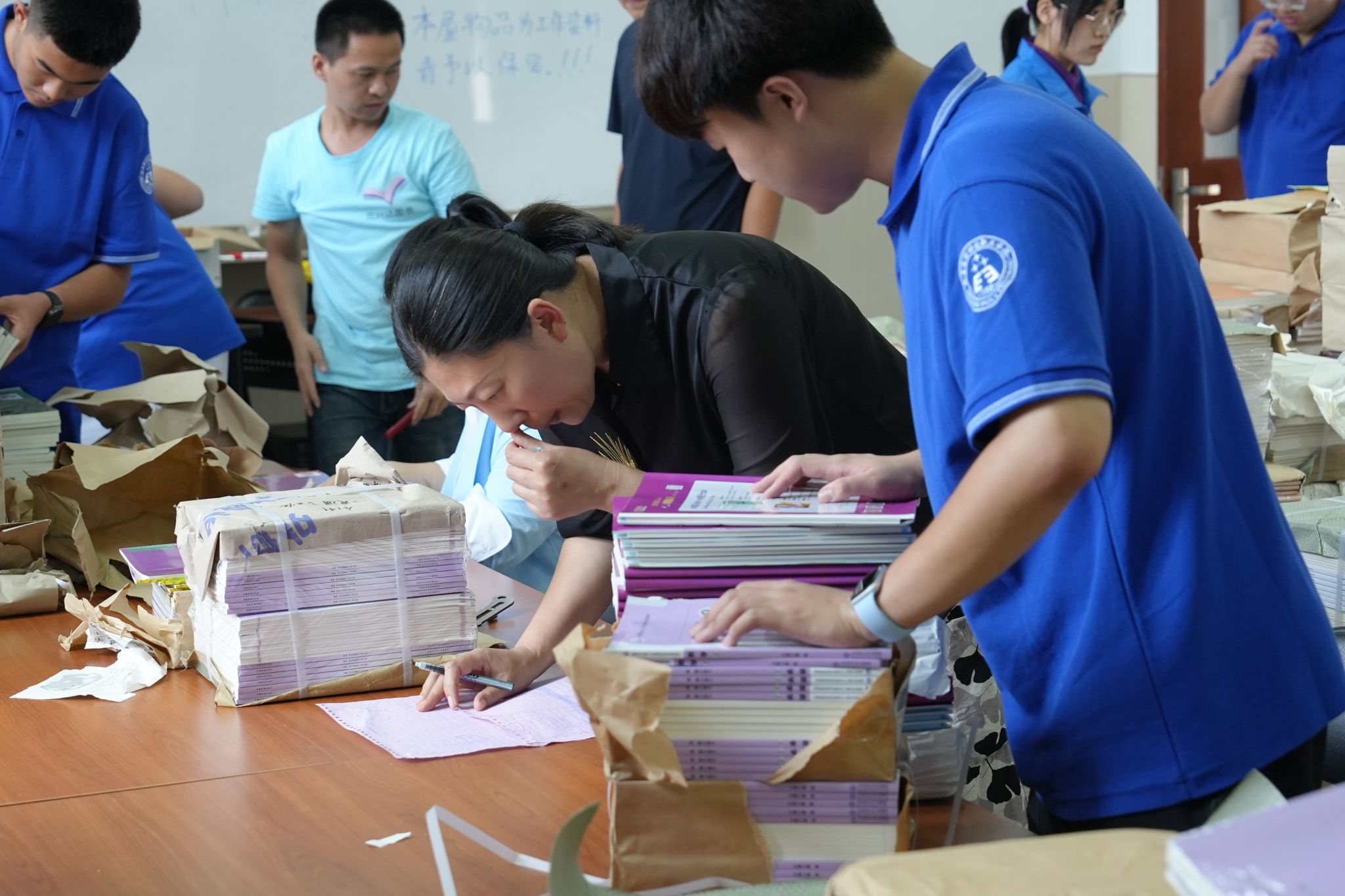 在宿舍安顿好后,学生带着各项资料前往班级报到,班主任老师认真负责地收集学生资料,对学生和家长的疑惑进行耐心解答,细致周到,赢得了家长的一致好评。
