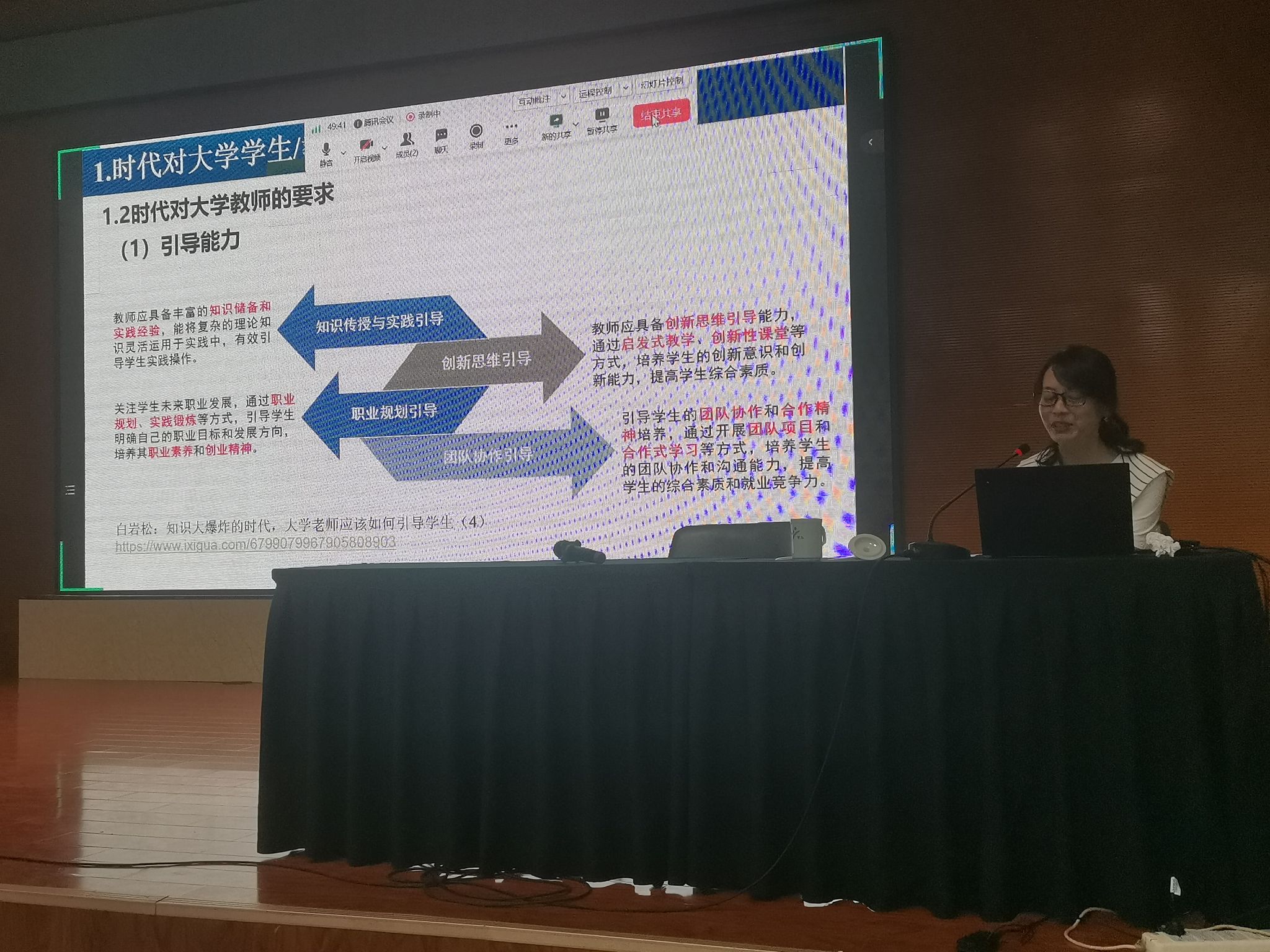 成果再现,高效助力。专家讲座期间,在北京教科院职教所梁燕研究员的组织下,参训学员线上线下同步观摩了由北京金隅科技学校陆艺老师、北京市商业学校李敏老师和北京信息职业技术学院赵岩老师分享的数学课程思政标杆成果,孔祥铭副教授、梁燕研究员分别做了点评。