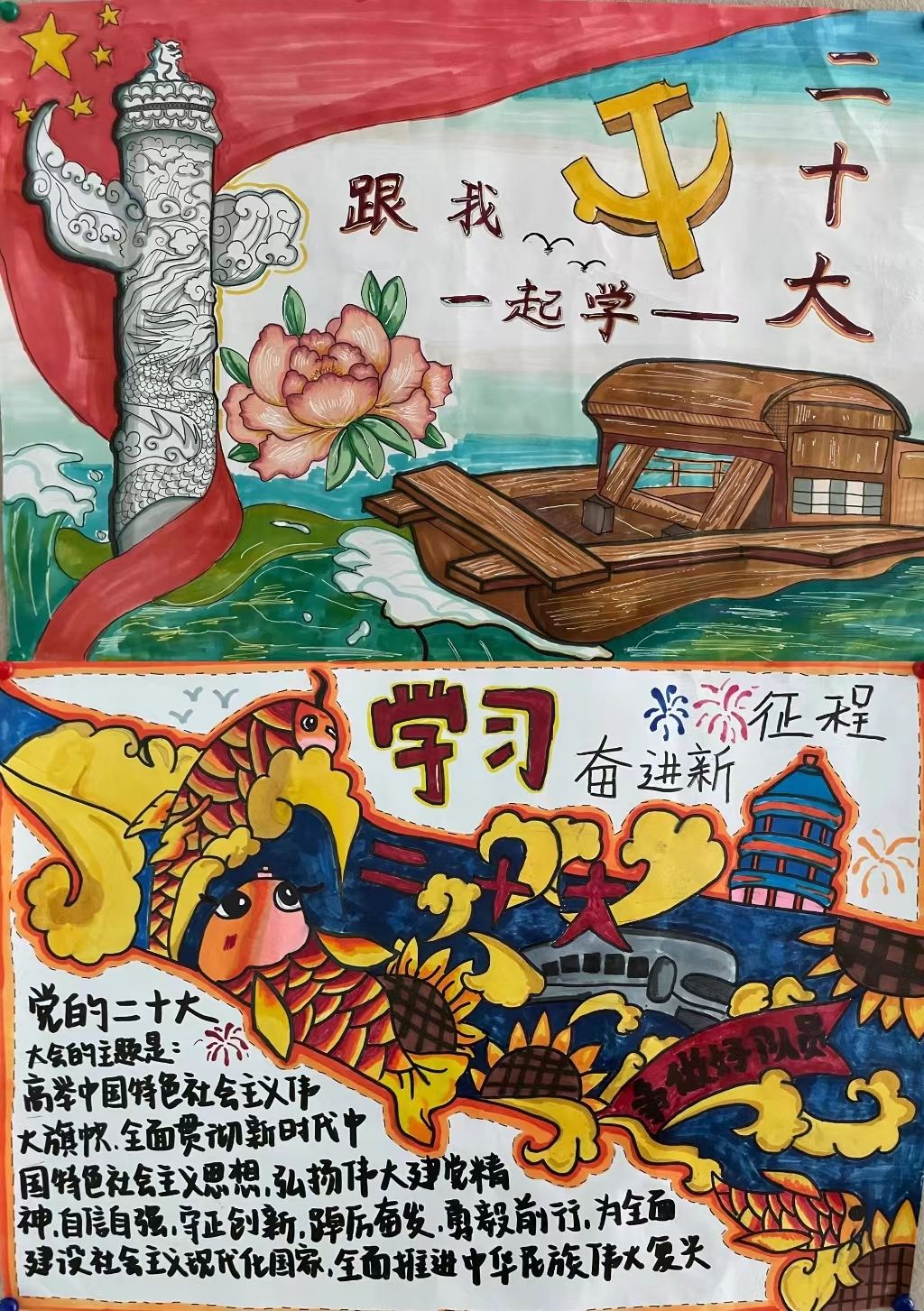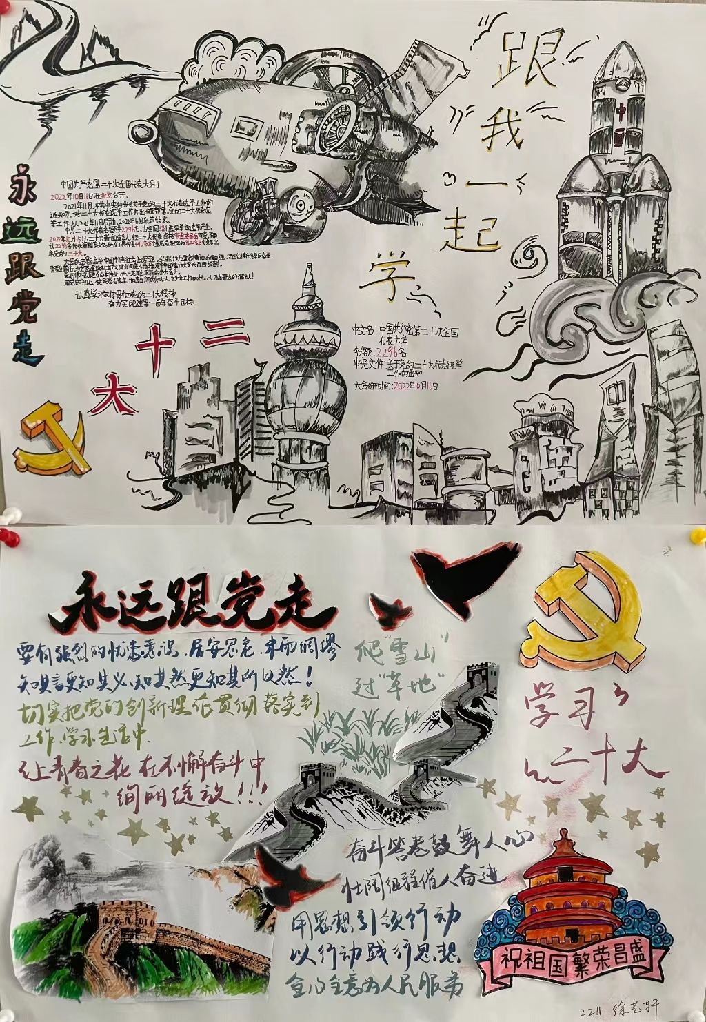 同学们结合主题,积极搜集素材,精心设计,采用图文并茂的方式,积极学习宣传党的二十大精神,经过认真筛选,本次活动评选出一等奖3名,二等奖4名,三等奖9名和优秀奖若干名。