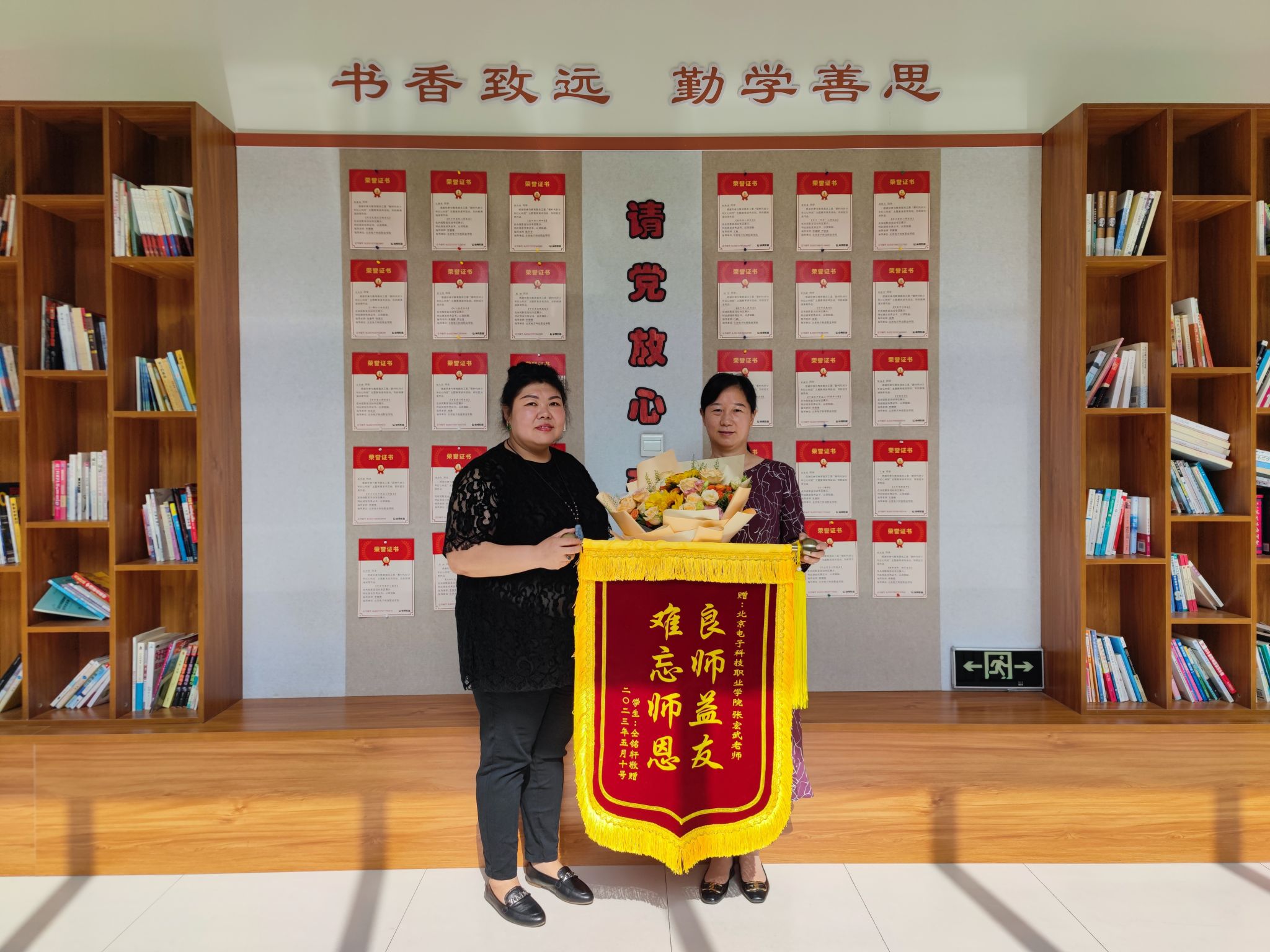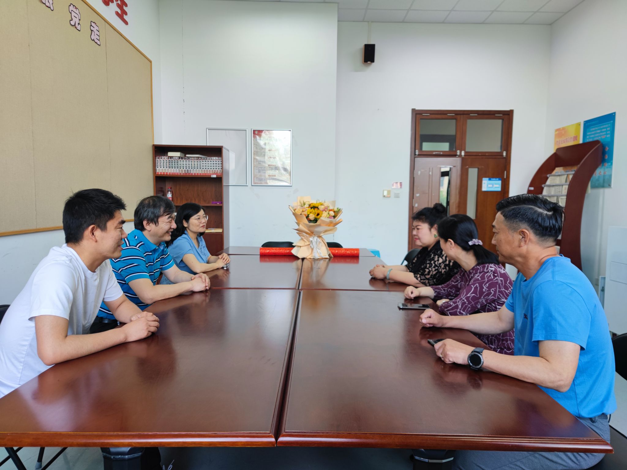 6月1日上午,基础教育学院22贯通培养1班仝铭轩同学的家长满怀感激地送来了绣有“良师益友 难忘师恩”字样的锦旗,感谢学院师生在孩子生病期间给予的关怀和照顾。学院党总支书记熊伟、副书记于海霞、学工办周永猛、年级组长黎林飞及班主任张宏武与学生家长展开了亲切交流。