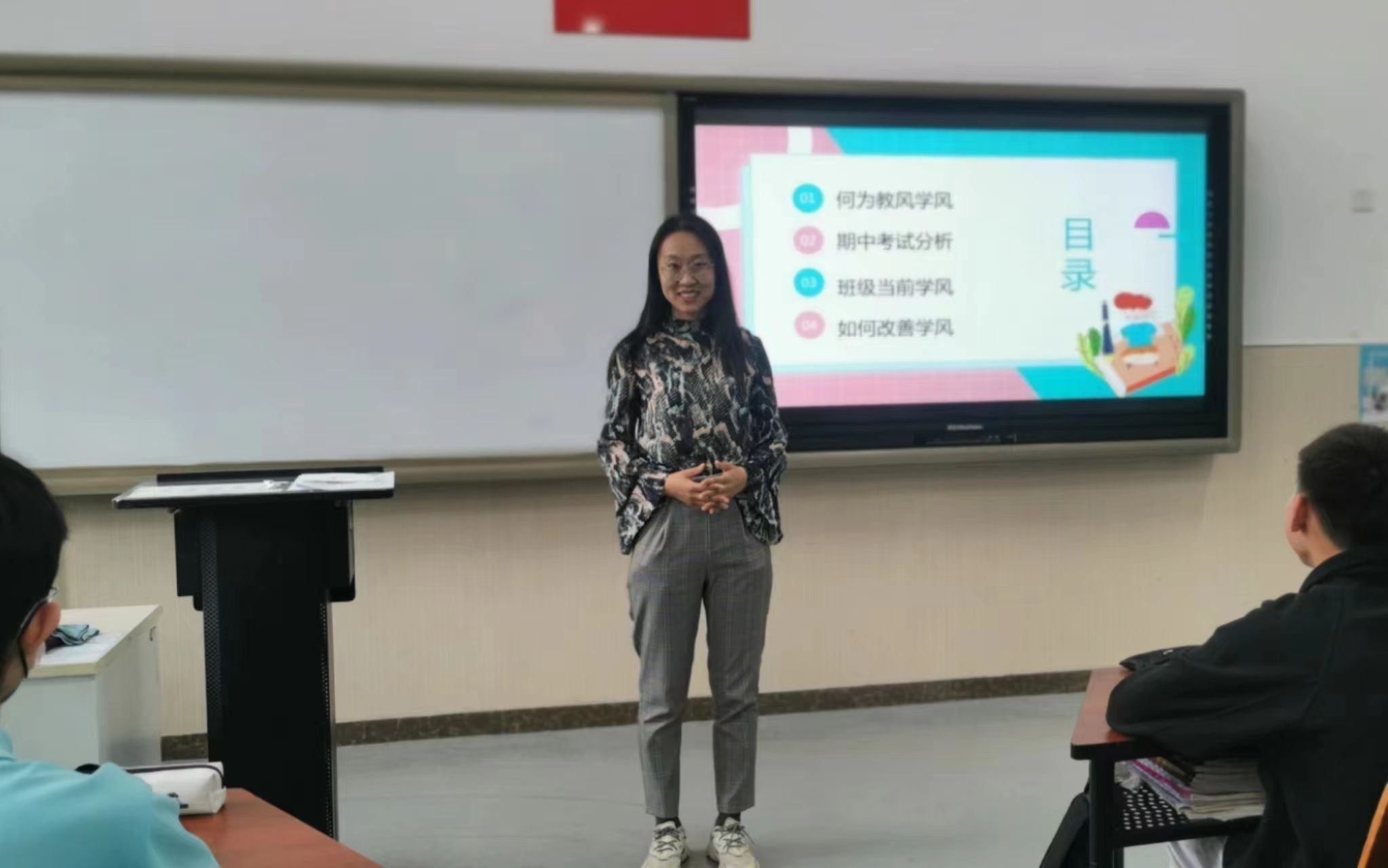 各班以期中考试学情分析为重点,总结了班级考试成绩情况,对班级学风建设方面存在的问题进行梳理,组织各科成绩优秀的同学进行学习经验分享。结合校园常见的不文明行为,各班对学生开展教育引导,并围绕近期系列读书活动做总结,就如何更好建设书香学院进行深入交流讨论。