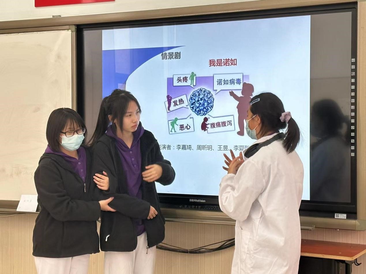 同学们自导自演情景剧《我是诺如》和《我是甲流》,用妙趣横生、富有生活气息的表演,向大家介绍了诺如病毒和甲流病毒的传播途径、治疗方式和预防措施等,呼吁大家在校学习生活中应科学佩戴口罩、少聚集、勤洗手、多通风,一旦发现症状及时上报并检查,做好自我隔离与防护,避免病毒在人群中传播。帮助大家了解传染病相关知识,预防传染病,保护身心健康,共建健康校园。