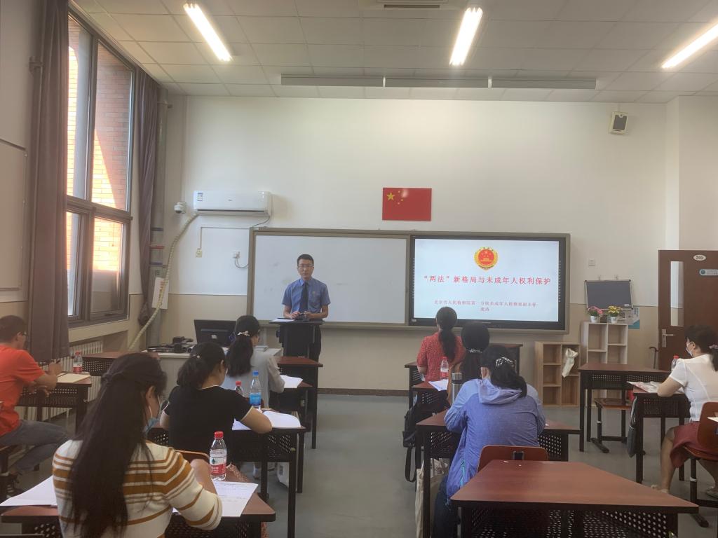 本次培训邀请到北京市检察院第一分院第七检察部庞涛检察官讲授法治课。庞涛以《“两法”新格局与未成年人权利保护》为题,向学院班主任老师深入浅出地讲解了《中华人民共和国未成年人保护法》(2020年修正)、《中华人民共和国预防未成年人犯罪法》及国家近期出台的一系列未成年人权利保护新规。为突出职业教育的特色,庞涛还结合职业教育法中关于学生就业权利保障的相关条款,就未成年人保护法、民法典、劳动合同法中未成年工劳动权益保护问题进行了详细阐述。