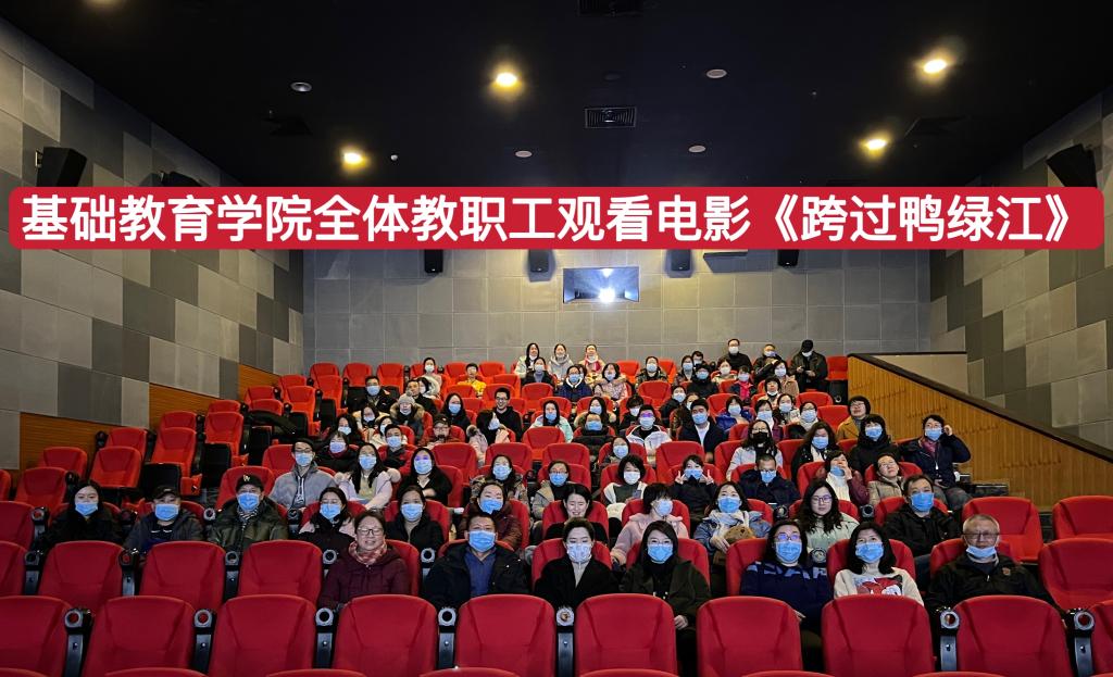 为深化拓展党史学习教育,引导广大党员干部群众传承建党精神、赓续红色血脉、厚植爱国情怀,进一步从百年党史中汲取奋进新征程、建功新时代的强大精神力量,2022年1月10日下午,基础教育学院组织全体教职工观看红色电影《跨过鸭绿江》