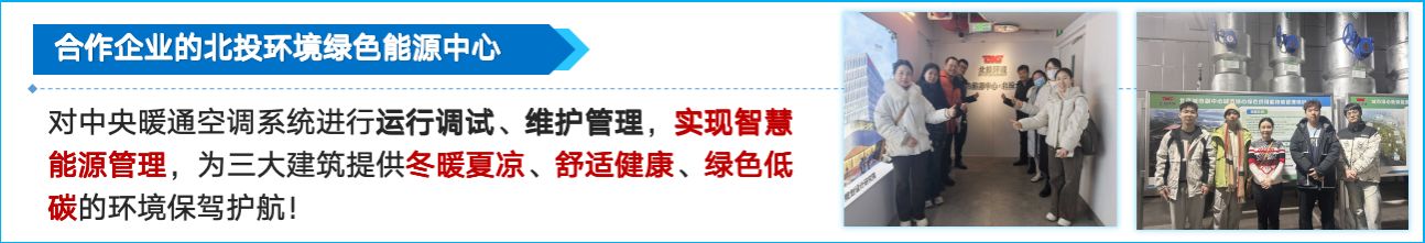 (2)校外实训基地:北京城市副中心三大建筑能源中心、首都机场动力能源有限公司、国家游泳中心(冰立方)、国家速滑馆(冰丝带)、外交部、亦庄城市服务集团、同方股份有限公司、新航城能源发展公司、北京住总集团、中国建设股份有限公司、中建电子等。