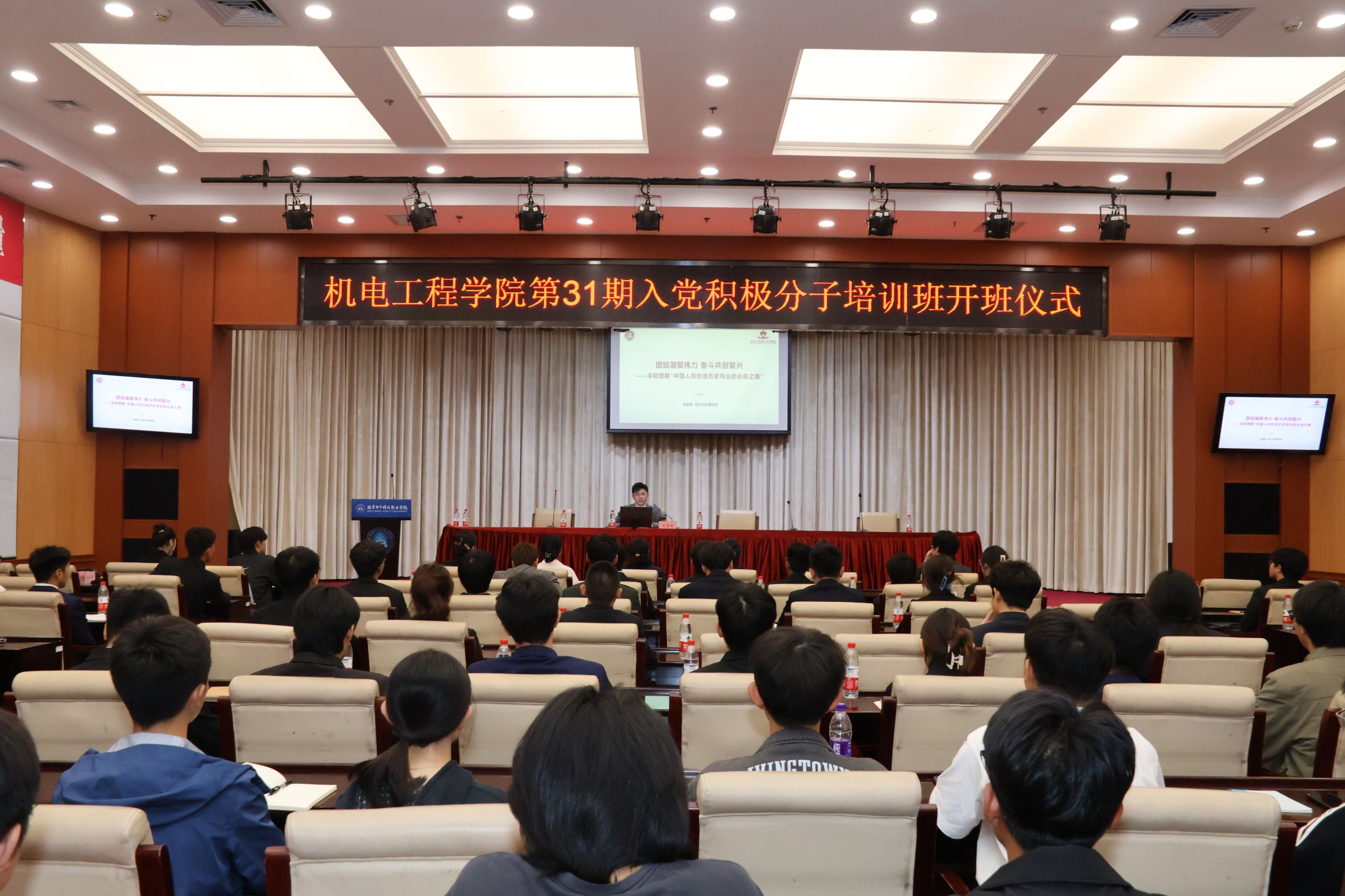 为深入学习贯彻习近平新时代中国特色社会主义思想和党的二十大、二十届三中全会精神,提高入党积极分子的思想觉悟和政治素养,提高党员发展质量,2024年10月16日,机电工程学院举行第31期入党积极分子培训班开班仪式暨第一课。学院党总支副书记周海君主持开班仪式并作动员讲话。