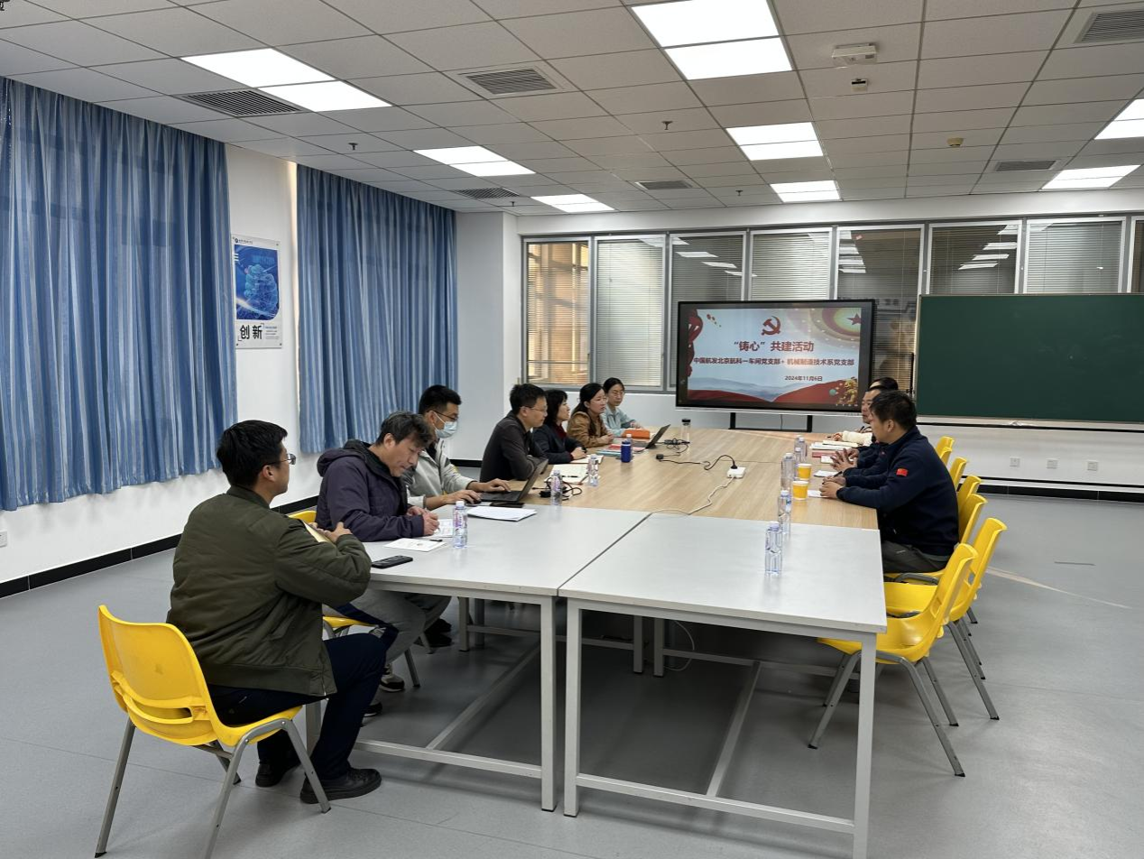 为进一步加强校企合作,推进产教融合,充分发挥陈莹技能大师创新工作室的育人功效,11月6日,中国航发北京航科(以下简称北京航科)一车间党支部来到机电工程学院,与机械制造技术系党支部开展了以 “铸心” 为主题的共建活动。中国航发北京航科一车间党支部宣传委员陈莹、纪检委员刘明阳、组织委员王凯立,机电工程学院党总支书记杨金丽、机械制造技术系党支部全体党员参加了本次活动。