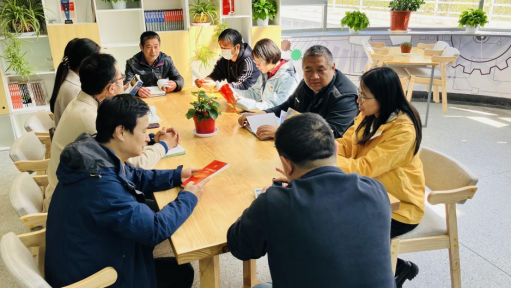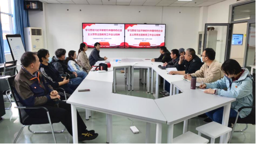 全体参加活动党员在先进制造实训基地图书角共读原著,并进行交流研讨,教师纷纷表示要用习近平新时代中国特色社会主义思想武装头脑,指导实践。
