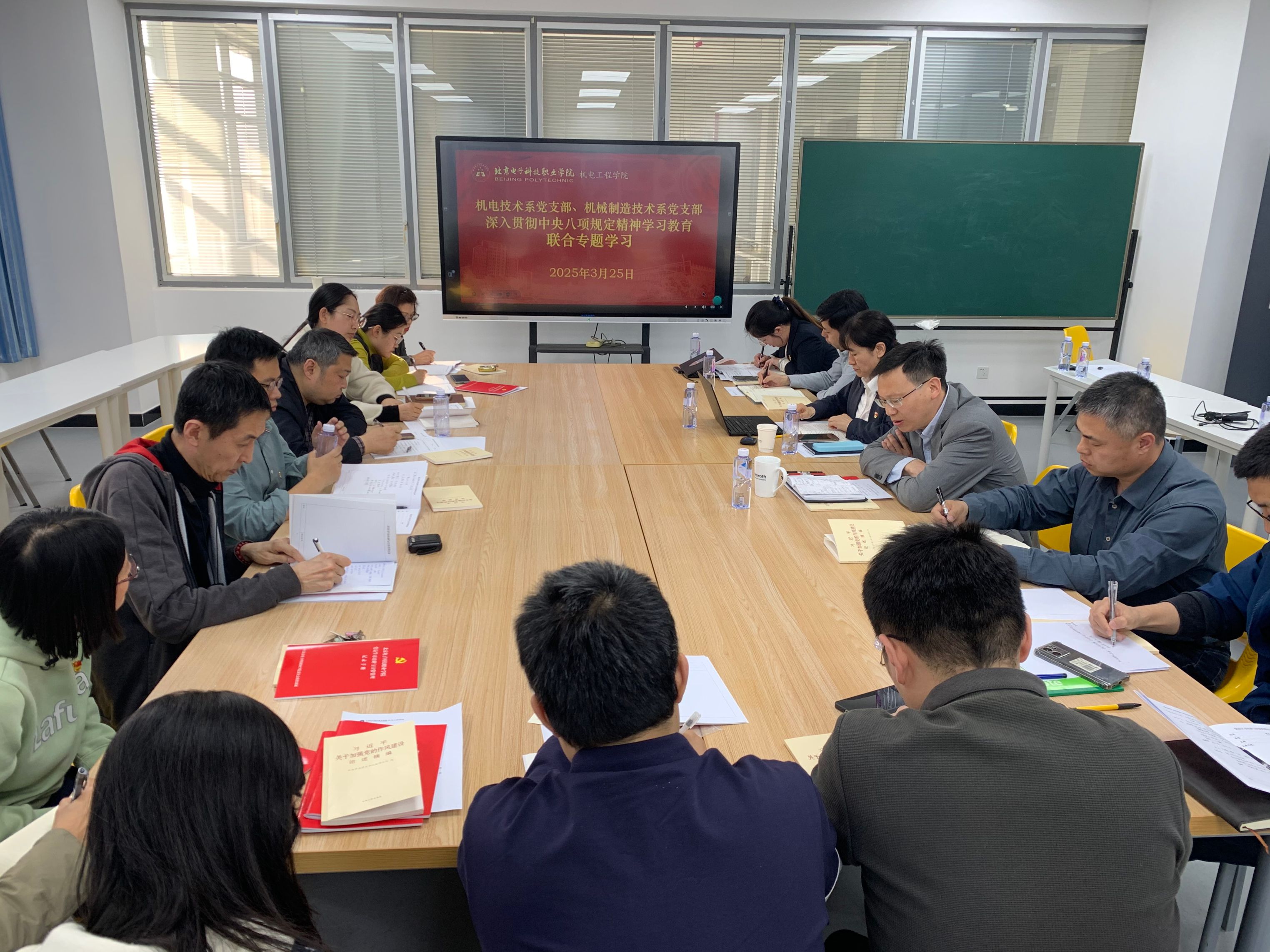 2025年3月25日,机电工程学院机电技术系党支部、机械制造技术系党支部开展“深入贯彻中央八项规定精神学习教育”联合专题学习,支部全体党员参加,机械制造技术系党支部书记梁美芹主持活动。