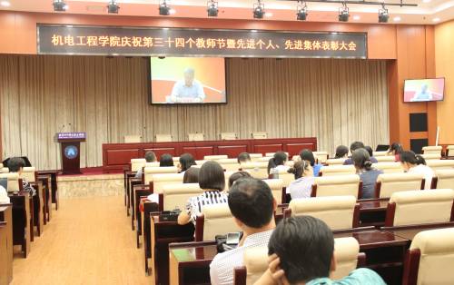 9月7日中午,机电工程学院全体教职员工欢聚一堂,共同庆祝自己的节日——第34个教师节。联系校领导幺居标副院长、机电工程学院班子成员及全体教职工参加了大会。大会由党总支副书记马峻主持。